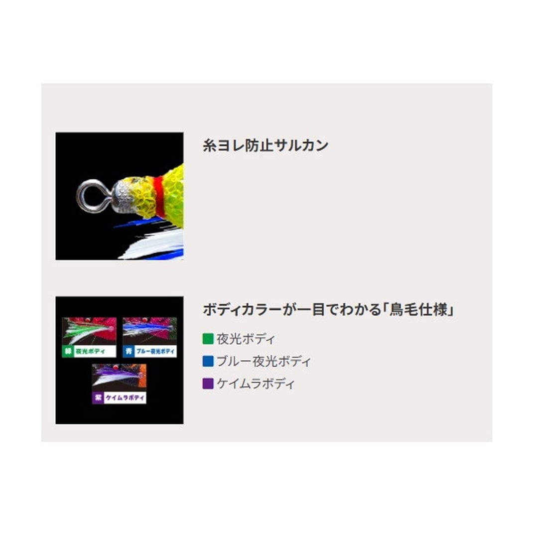 ボリュームのある魅惑のぷっくりボディ!イカの視覚へのアピールと、高浮力ボディから繰り出される波動のWアピール!●抜群の潮つかみで安定アクション。●デイゲーム~夜焚きまであらゆる状況に対応可能なカラー構成