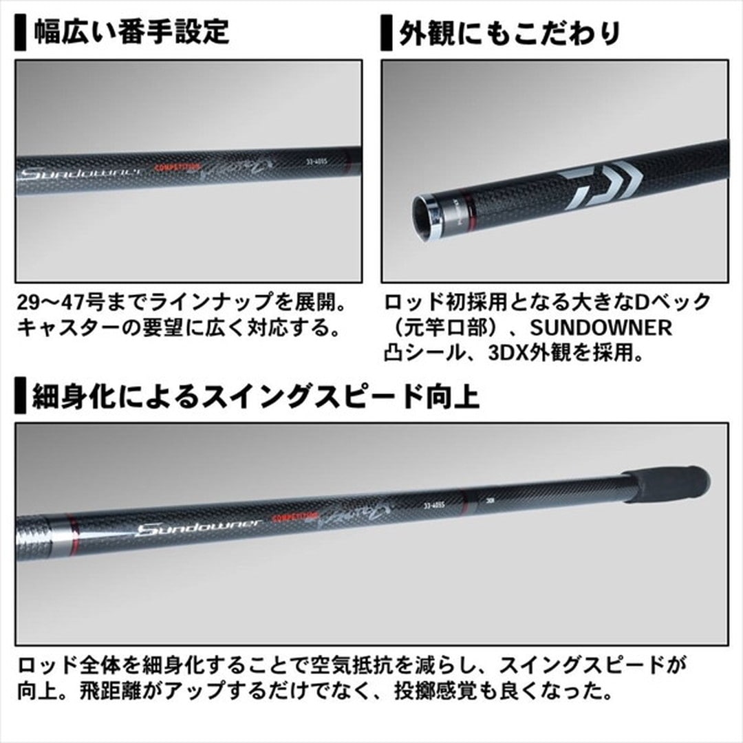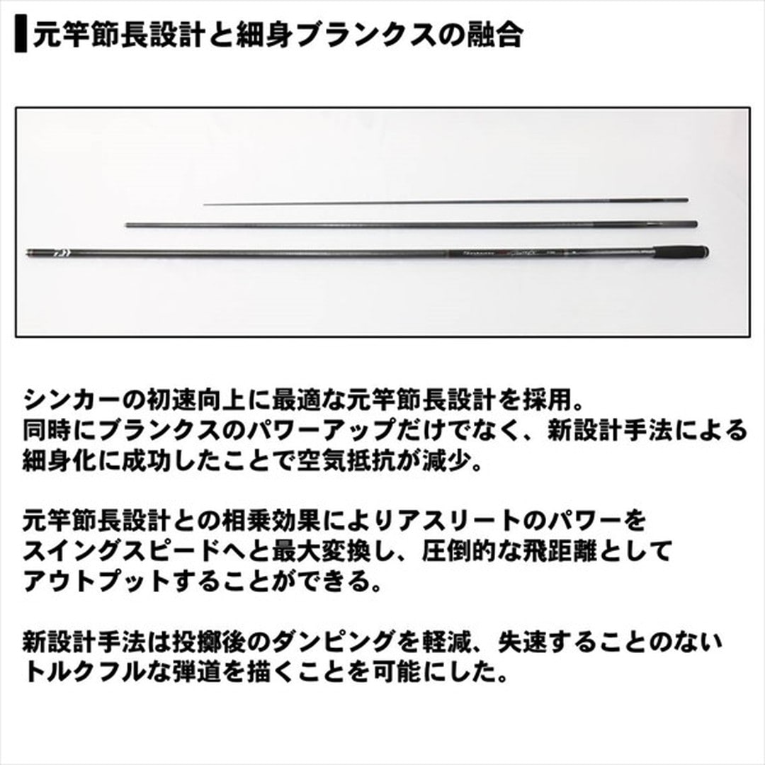 ストリップ仕様=ガイド・リールシート無し 標準全長:3.95m 継数:3 仕舞寸法:161cm 標準自重:540g 先径:4.3mm 元径:23.2mm カーボン含有率:99% 【20ndrd05】【20newdaiwa】