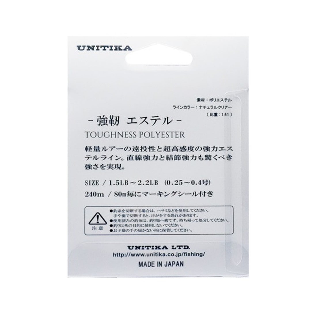 軽量ルアーの遠投性と超高感度の強力エステルライン。直線強力と結節強力も驚くべき強さを実現。ストレスなく最高の状態でセットできる240m巻き。