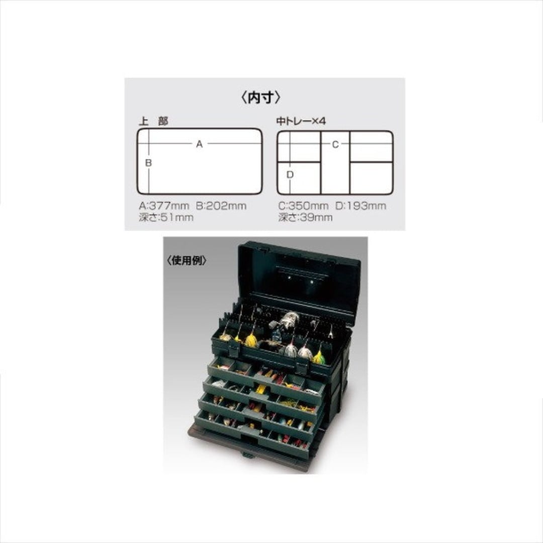 ランガンシステムボックス! 備考:引出し4段トレイ、36コンパートメント、トレイは可変式コンパートメント、ワームプルーフトレイ、スピナーベイトラック8枚付、フック掛け合計108
