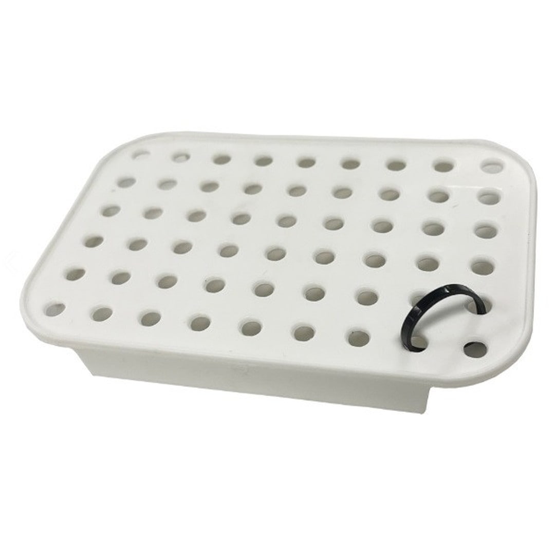 サシエを取り出しやすい前開き構造です。フタ部がトレイになり、使いたい分だけをサシエを小出しできるため、エサ付けが手返しよくスピーディーに行えます。溶けたエサから出た水分が切れるスノコ付。バッカンにセットしたままフタのファスナーが閉められるショートフック仕様。