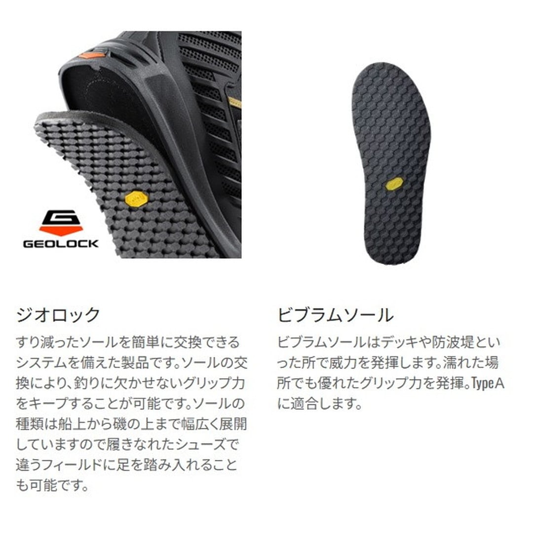 濡れたところでもグリップの高いラジアルソール。ソールタイプA。ビブラムキット Aはデッキや防波堤といった所で威力を発揮します。濡れた場所でも優れたグリップ力を発揮。TypeAに適合します。