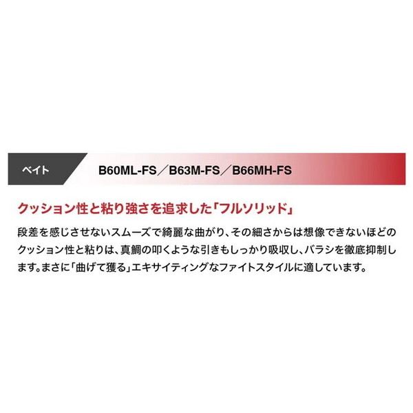 Xシート エクストリームガングリップ搭載で実釣性能がさらに向上 ■B60ML-FS/RIGHT・・・フルソリッドモデル。鯛ラバ :バーチカル30-100g /ドテラMAX150g、水深20-80m+α、フルソリッドシリーズの中で最もしなやかなアイテム、低活性時、潮が緩い状況 etc.