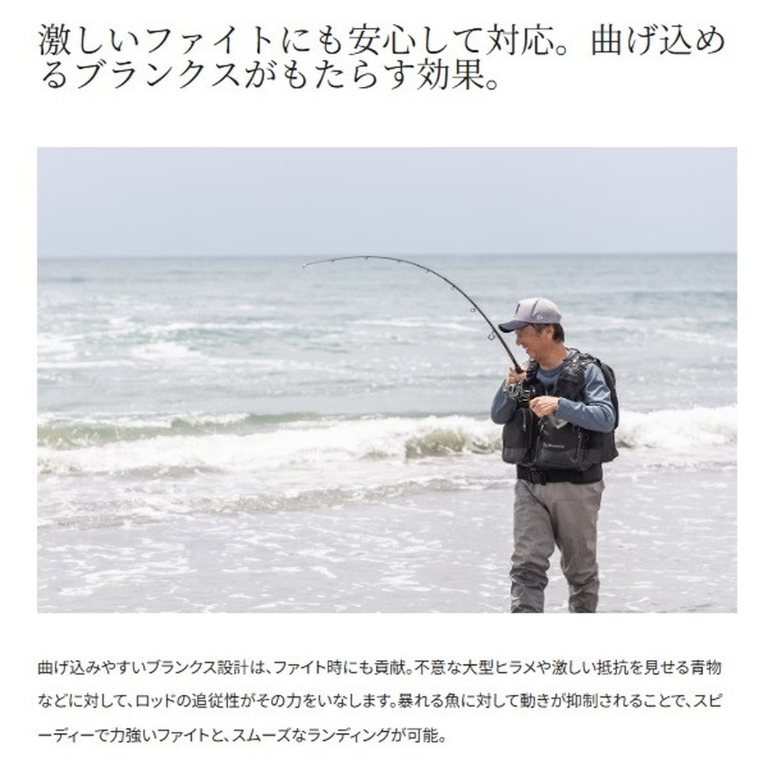 曲げ切り、弾き出す。サーフシーンの自在なキャストに対応。■S112M+・・・ロングロッドとして求められる飛距離を追求。シリーズでもっとも長いレングスとアングラーの意図した出力を正確にアウトプット可能な調子によって、安定したロングキャストが実現可能。また、レングスを生かしたラインメンディングに起因する正確なルアートレースも大きな魅力。