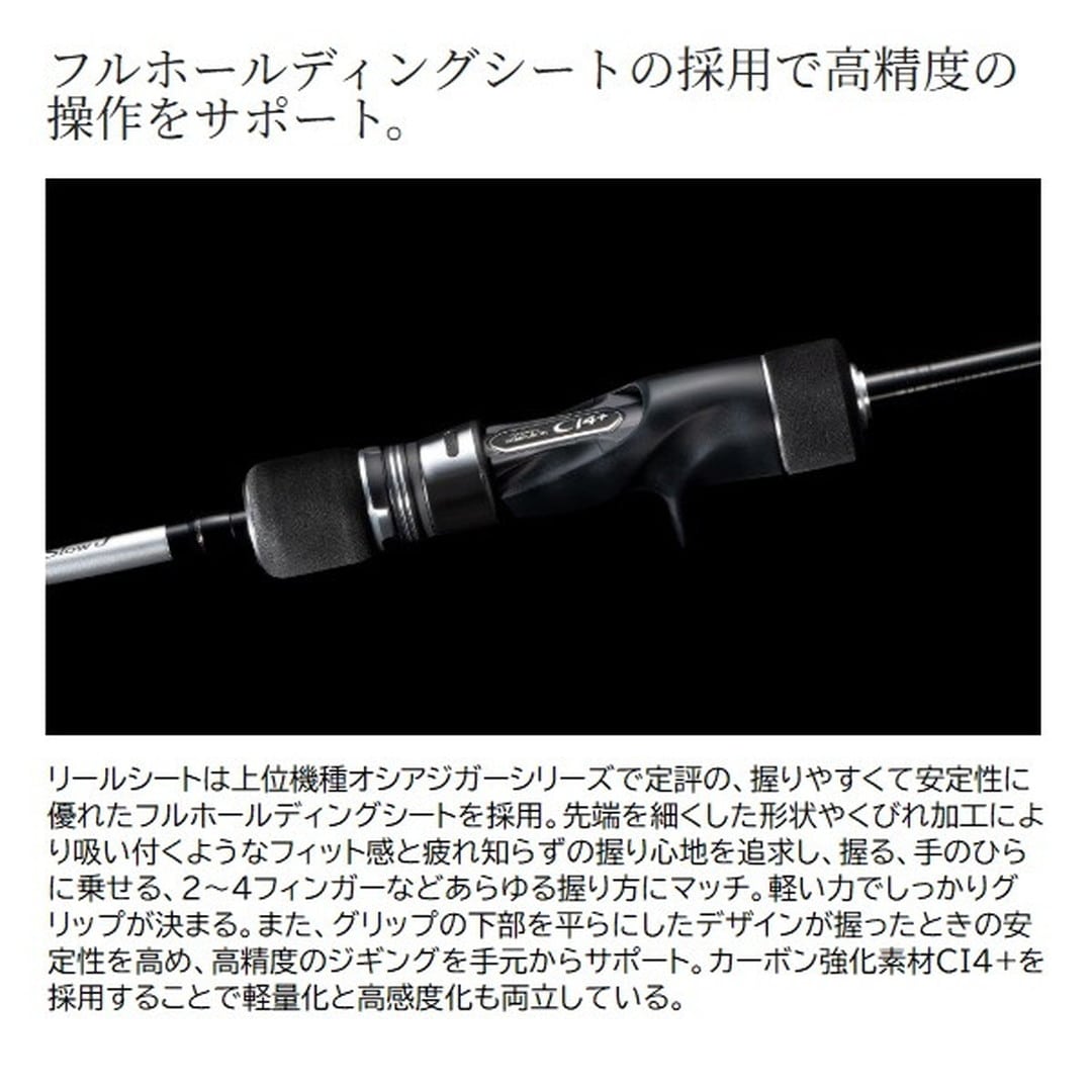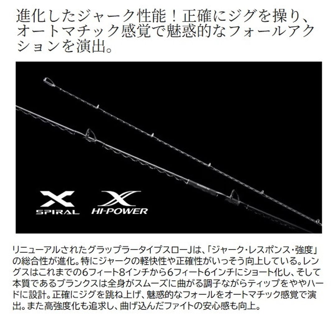 ジャーク・レスポンス・強度。総合性能が進化!「ジャーク・レスポンス・強度」を総合的に磨き上げ、王道進化を果たしたグラップラータイプスローJ。多彩なフォールアクションを生み出す6フィート6インチレングスで統一し、ジャークの軽快性&レスポンスを向上させると同時に体への負担を軽減するバランスを実現。全身がスムーズに曲がりつつもティップはややハードな設計で、曲げ込めばオートマチックな感覚でジグを跳ね上げ、魅惑的なフォールを演出。また高強度化を追求し、曲げ込んだファイトの安心感も向上。新たに採用したフルホールディングシートの握りやすさと相まって精度の高いジギングをサポートします。1パワーから6 パワーまで全6アイテムを展開し、近海から遠征の大物まであらゆるシーンでシステマチックに適応します。