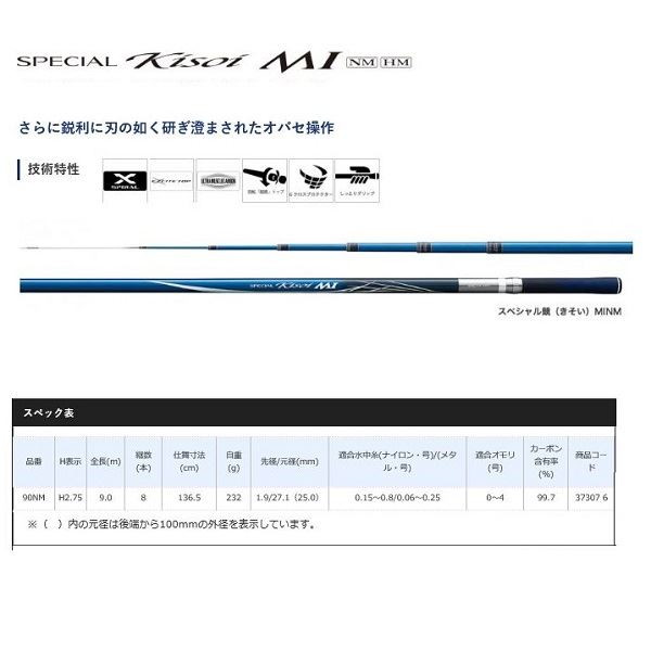 全長:9.0m 継数:8本 仕舞寸法:136.5cm 自重:232g 先径/元径(mm) :1.9/27.1(25.0)