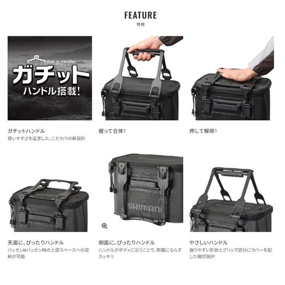 握って合体、押して解除。使いやすいハンドル搭載のバッカン・ガチットハンドル搭載・塩ガミしにくい太番手ファスナー・ドットボタンで、半開きが可能