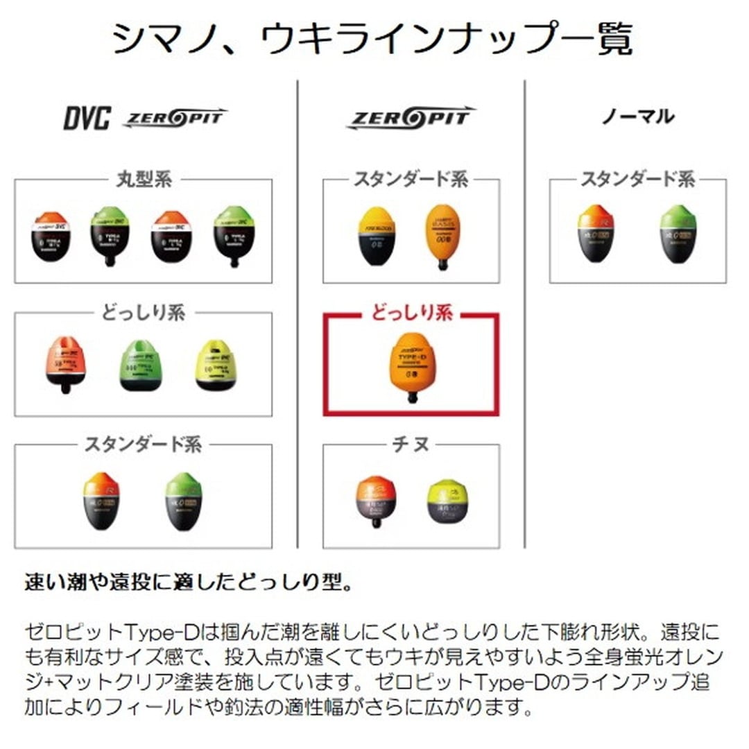 Type-Dでどっしり安定。マットクリアで視認性も良好。道糸を切らずに交換できるゼロピット。全身蛍光オレンジ+マットクリア塗装で逆光でも視認性に優れたどっしりタイプのウキです。