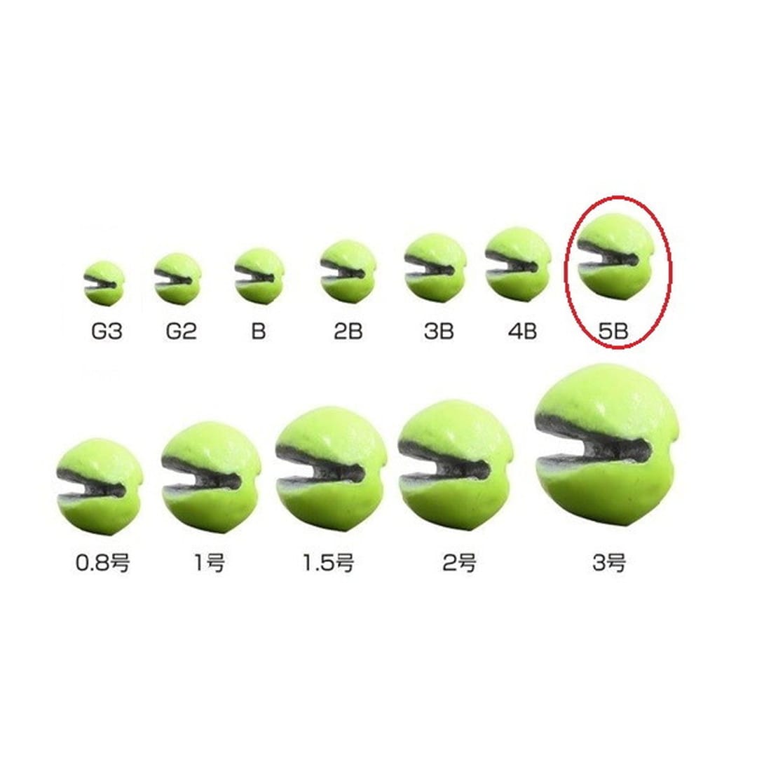 便利な遊動ガン玉に視認性を追加。●遊動ガン玉に蛍光塗装を施して視認性を追加。視認性のある遊動ガン玉です。水中でも良く見えるイエロー塗装を採用し、水中での仕掛けの落ちが一目瞭然です。●ゴム製被膜で衝撃が加わっても塗装が剥げにくい。イエローの被膜にはゴム素材を採用。通常の塗装では他物との接触で色剥げが生じますが、柔軟な素材で塗装することにより傷を軽減します。●割面は非塗装なので割れ目がわかりやすい。遊動ガン玉の外周部のみを塗装しています。ラインを挟み込む割り部の内側は非塗装となっているため、手に取った際に素早くラインを挟み込む位置が把握可能です。