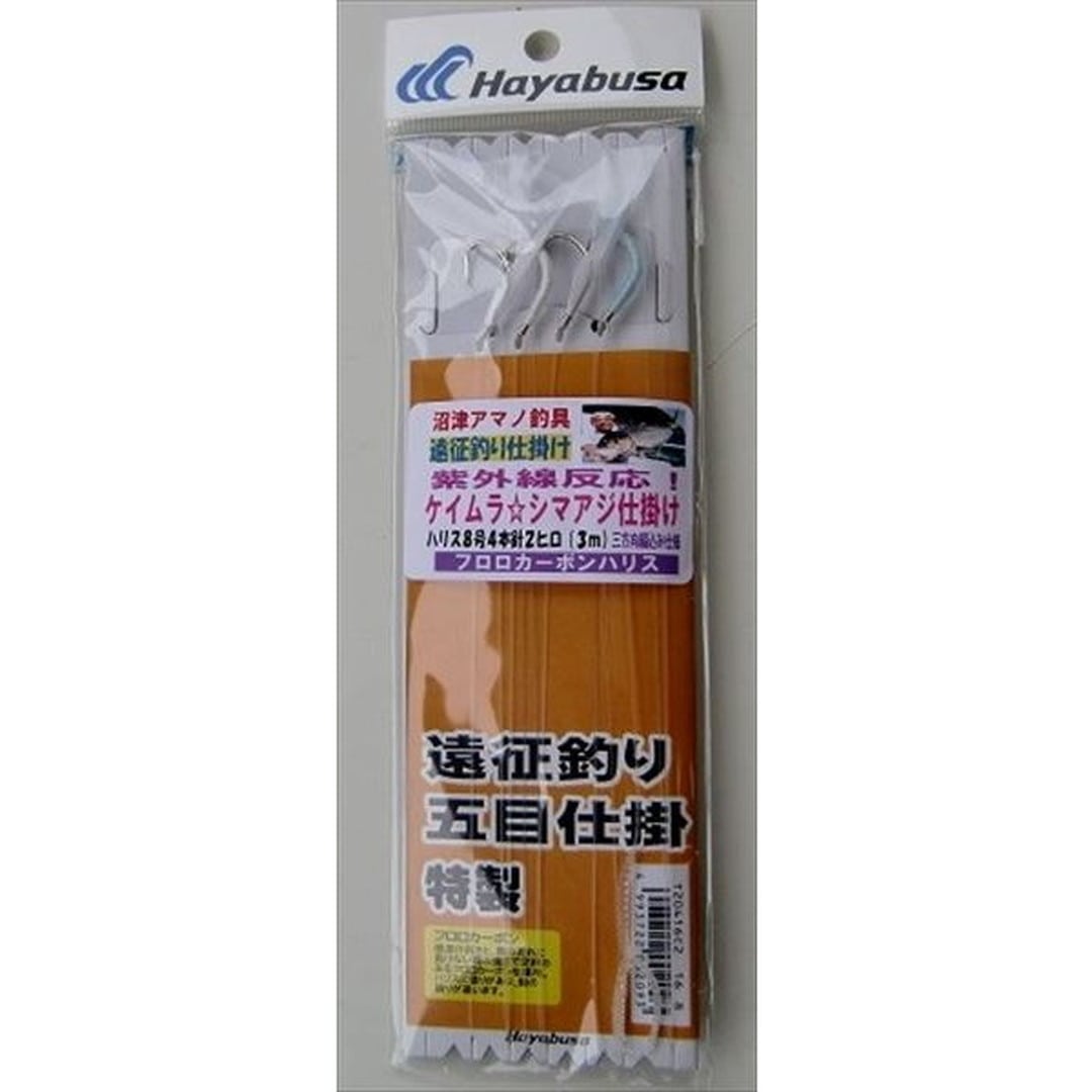 4本針すべての針に紫外線加工された魚皮をつけた遠征シマアジ仕掛