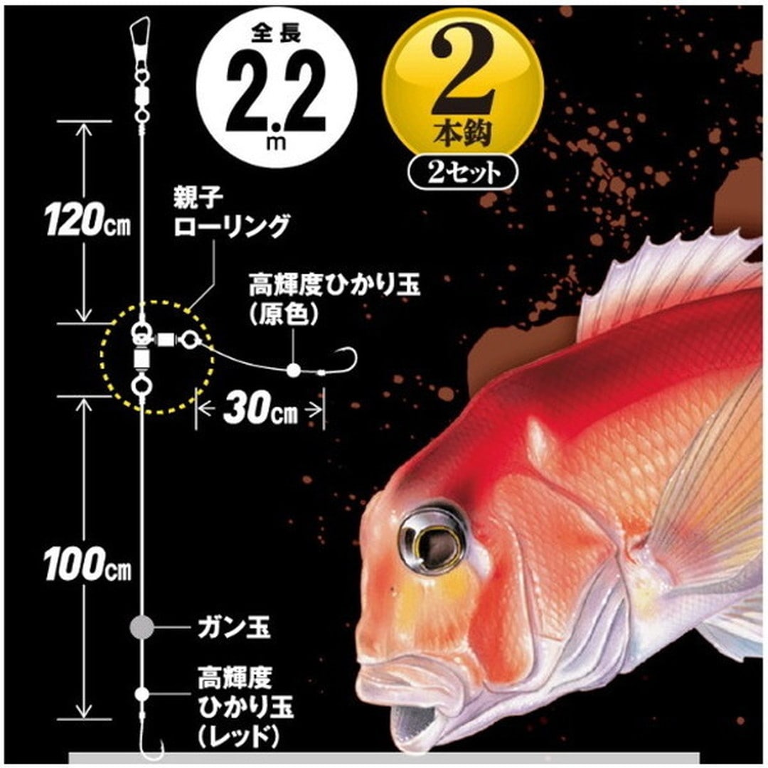 「ガン玉仕様」仕掛の吹き上がりを抑え、アマダイが捕食する底付近のタナを長くキープします。潮の速いタイミングを攻める時に特に有効です。「オールフロロカーボンライン」感度の良さと潮の流れに負けないコシの強さで糸絡みを軽減。耐摩耗性に優れており、多少のこすれでも安心です。「高感度ひかり玉」見たままの色で強烈に光る最先端のひかり玉。エビや虫類が発する妖しい光と同様のリアルな光でアマダイを誘います。