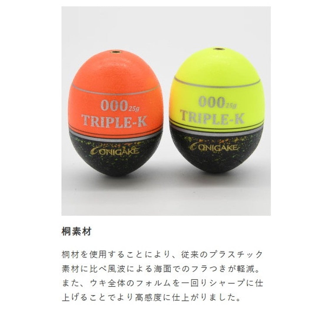 國見孝則監修モデルのふかせウキ。超遠投を可能にするビッグフォルムでどっしりとした超低重心設計は強風時で攻めきれなかった沖のポイントもストレスなく狙えます。カラーには全天候対応のオレンジ、曇天時や水中での視認性に優れるイエローをラインナップ。状況に応じて使い分けることが可能です。