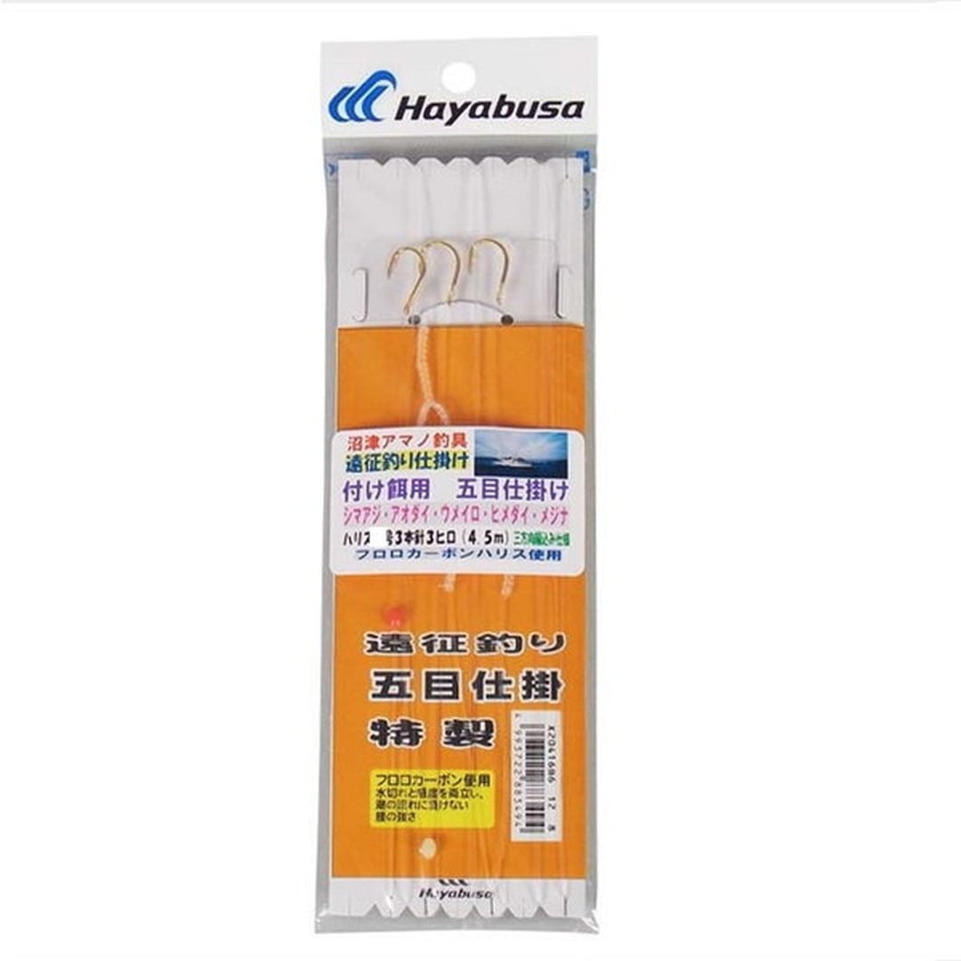 付け餌用遠征五目仕掛 3本針 空針 4.5mイカタンやオキアミを付けて使用します。五目釣りに最適の仕掛けで、喰い渋ったときに効果がでます。三方向編込み仕様・フロロカーボン使用