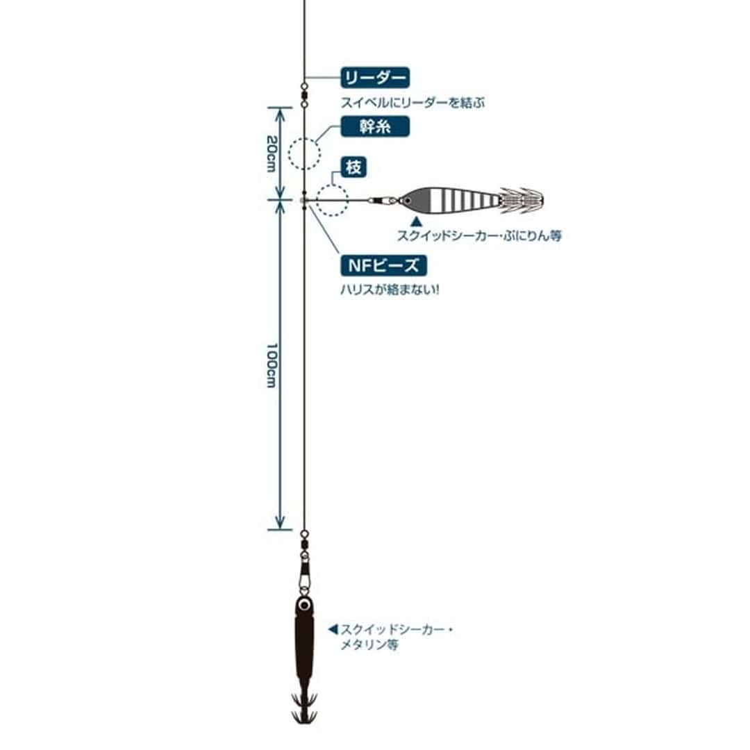 幹糸とハリスにコシのあるエステルを採用し、感度をアップさせたイカメタルリグです。