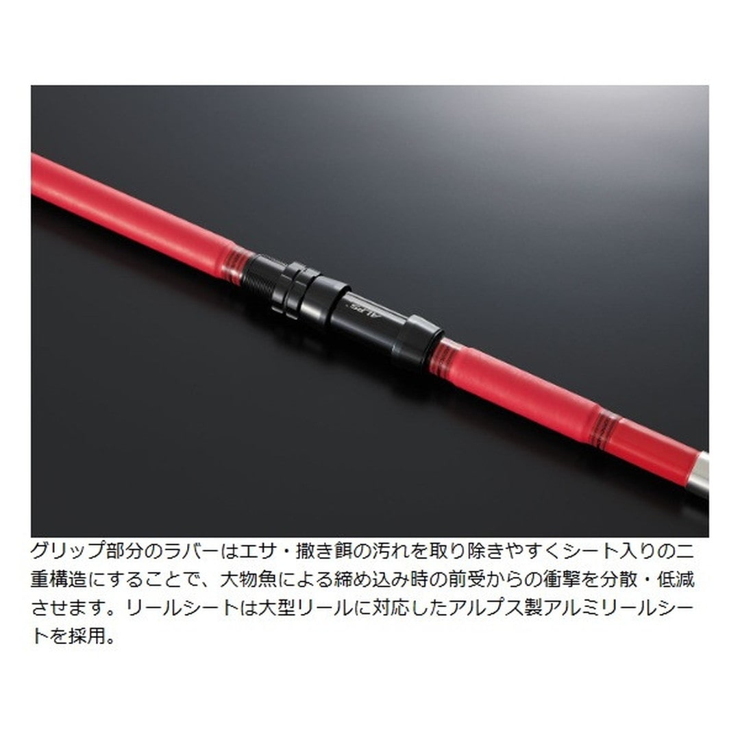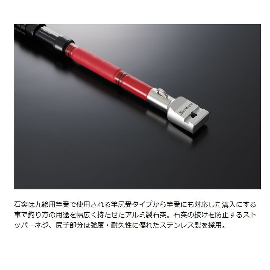 釣武者、初の九絵竿本九絵70-480。九絵、大型魚の強烈な締め込みを受け止める粘りを持たせたグラス素材を使用した肉厚ブランク設計。穂先は、夜釣りでも視認しやすいホワイトカラーを取り入れ魚がエサを吸い込んだ際に違和感を与え難いグラスチューブラとカーボンチューブラのコンポジット穂先を採用する事で軽量錘の釣りを可能とした九絵竿が完成しました。各部分のパーツは、腐食に優れたチタン製口金、大型リールに対応したアルプス製アルミリ―ルシート、竿尻受、竿受対応のアルミ製石突を装着し負荷の掛かるガイド部分は、強度に優れた富士工業製HBガイド、不意の竿落下を防ぐステンレス製尻手カンを使用。