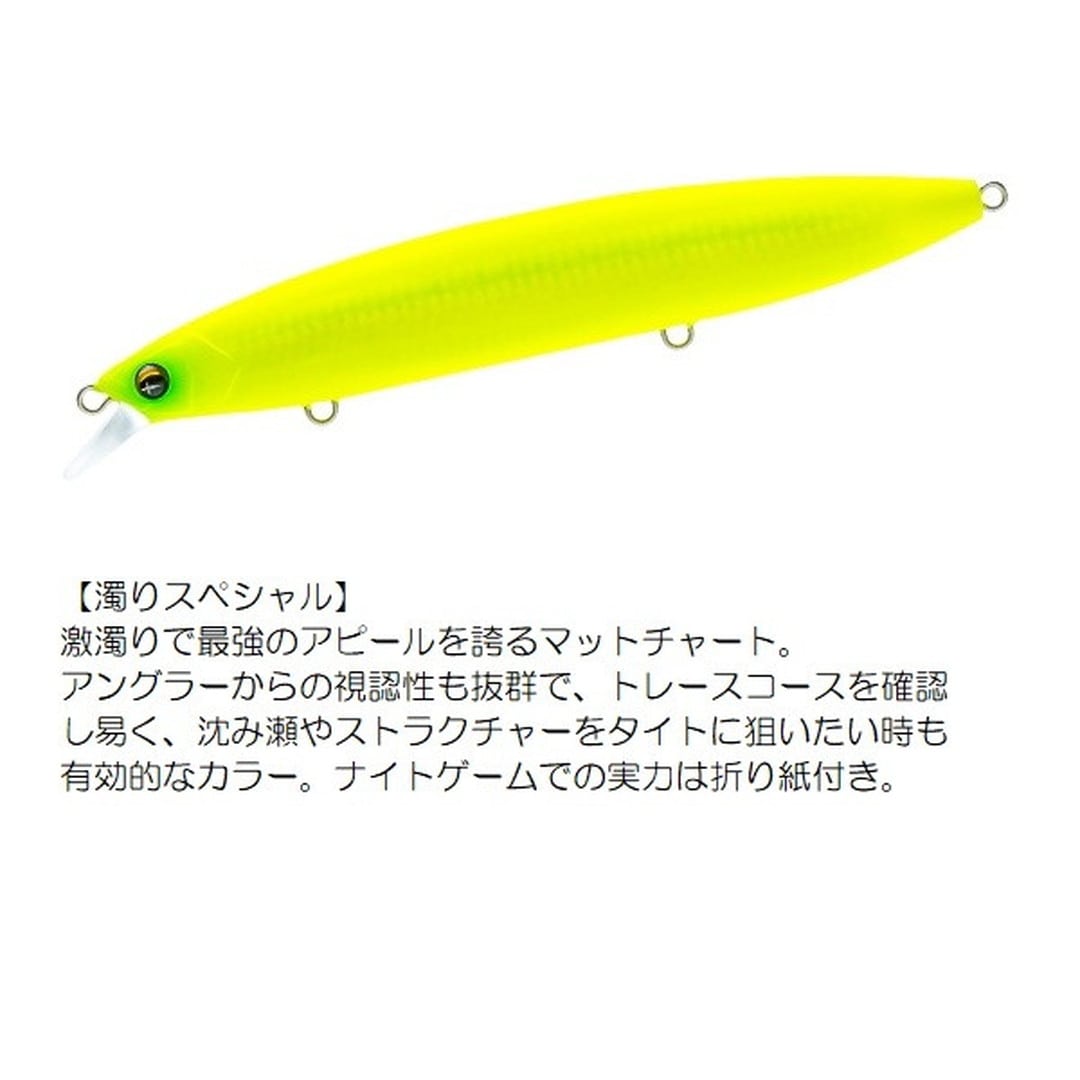 爆発的飛距離+レンズの閃光!(International Patent)遥か彼方のターゲットを狙い撃つ!!磯、サーフ、河川と様々な状況に対応する新スタンダードミノー!●爆発的な飛距離を生み出す、次世代重心移動システム「マグバレット」 搭載●ショートバイトも確実に獲る3フック仕様と、大物対応の#4フック搭載●PE2号ラインでもしっかり泳ぐウォブンロールアクション