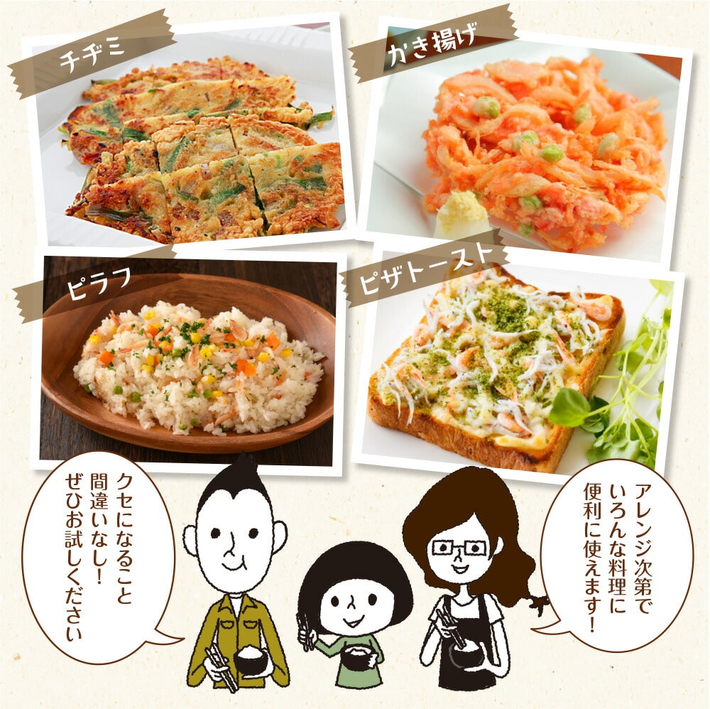 内容量が30gになりました。 名称 魚介乾製品 原材料名 ツノナシオキアミ(国産)、カタクチイワシ(国産)、えび(オキアミ 国産)、食塩、(一部にえびを含む) 内容量 30g 保存方法 直射日光、高温多湿を避けて保存してください。 販売者 株式会社いなば園 東京都中央区日本橋2-16-13 注意事項 ※開封後は袋を密封して冷蔵庫に保管し、お早めにお召し上がりください。 ※えび、かに、いかが混ざる漁法で採取しています。 ※本品製造工場では小麦、卵、乳、そば、えび、かに、大豆、ゼラチンを含む製品を製造しています。 ※開封時に原材料のツノナシオキアミ特有のにおいが強く感じられることがございます。 栄養成分表示(1袋30gあたり) エネルギー 87.9kcal たんぱく質 15.5g 脂質 3.0g 炭水化物 0.1g 食塩相当量 1.7g ※推定値