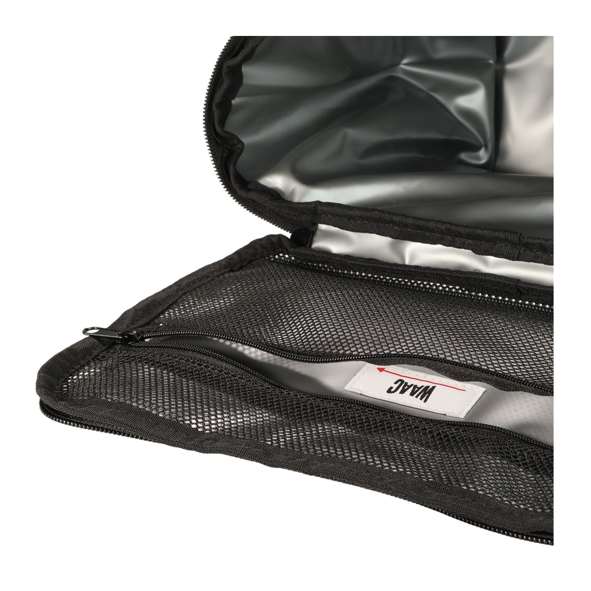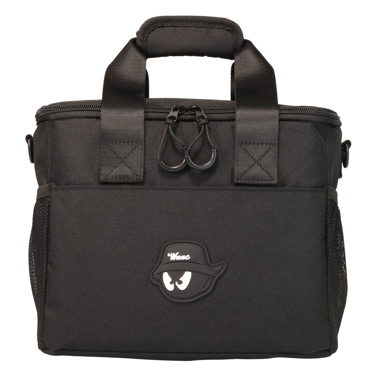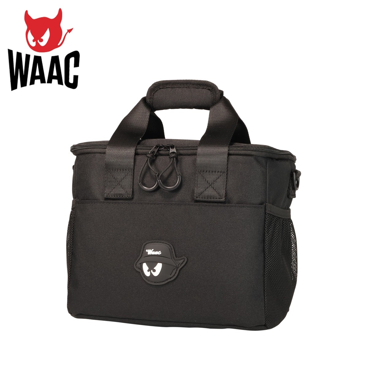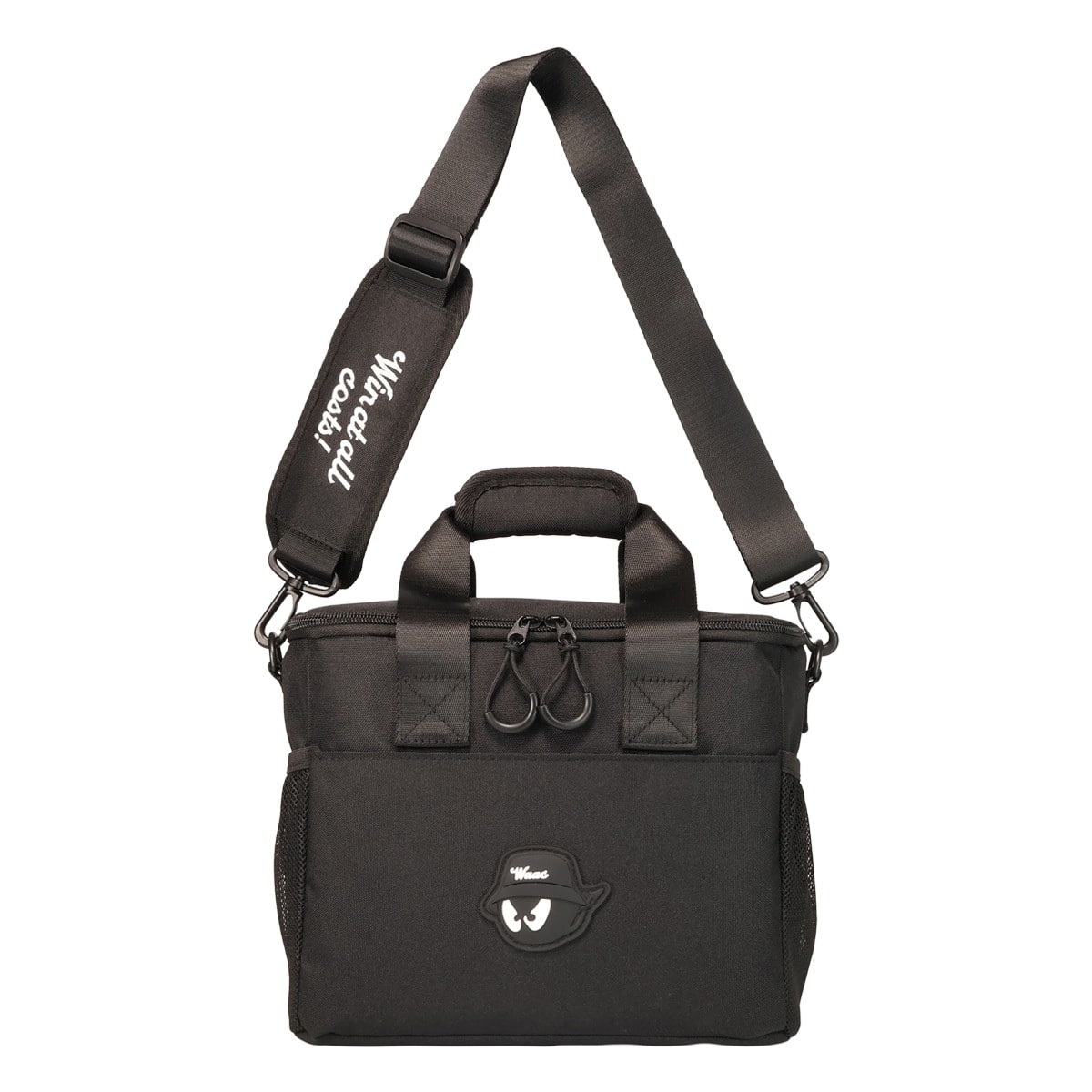 シックな黒一色のデザインで、カジュアルながらもスタイリッシュな雰囲気を演出したクーラーバッグ。保冷機能を備え、ゴルフラウンド中の飲み物や軽食を理想的な温度で保ちます。サイドにはメッシュポケットを配置し、小物収納の利便性を高めています。フロントにはWAACKYワッペンをあしらい、さりげないアクセントをプラス。丈夫なハンドルと調節可能なストラップで持ち運びやすく、暑い季節のゴルフはもちろん、クラブハウスでのランチタイムや練習場での長時間滞在時にも活躍する実用的なアイテムです。シンプルなデザインと機能性を兼ね備えた、ゴルフライフを彩る必携の一品です。