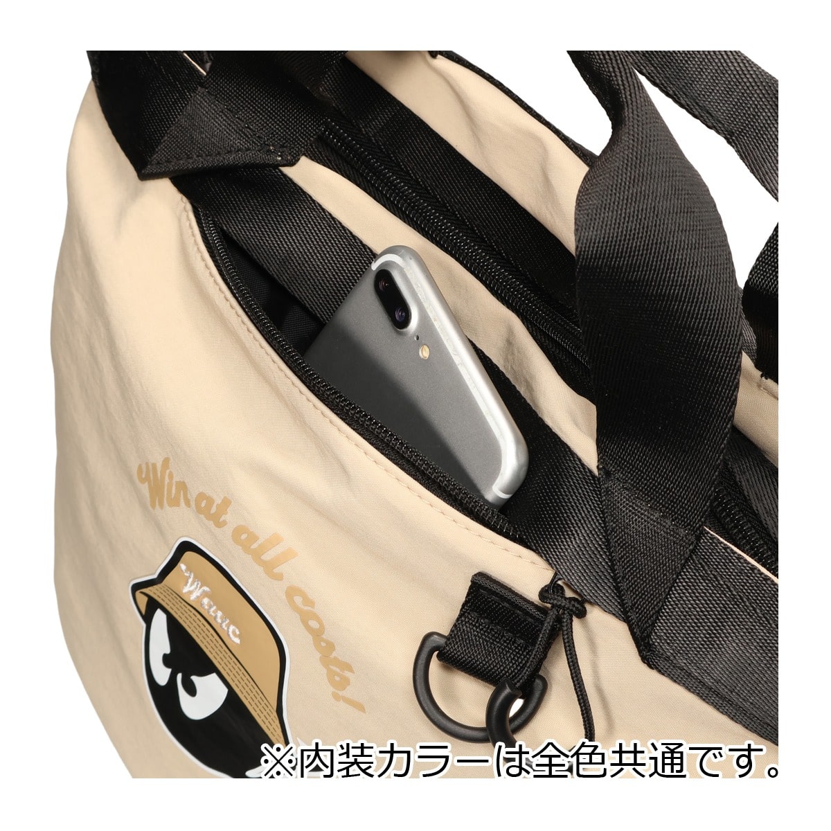軽量で丈夫なナイロン100%素材を使用し、裏地はポリエステル100%で実用性も抜群です。フロントのWAACKYプリントが遊び心をプラス。取り外し可能なショルダーストラップ付きの2WAY仕様で、ゴルフシーンから普段使いまで幅広く活躍します◎