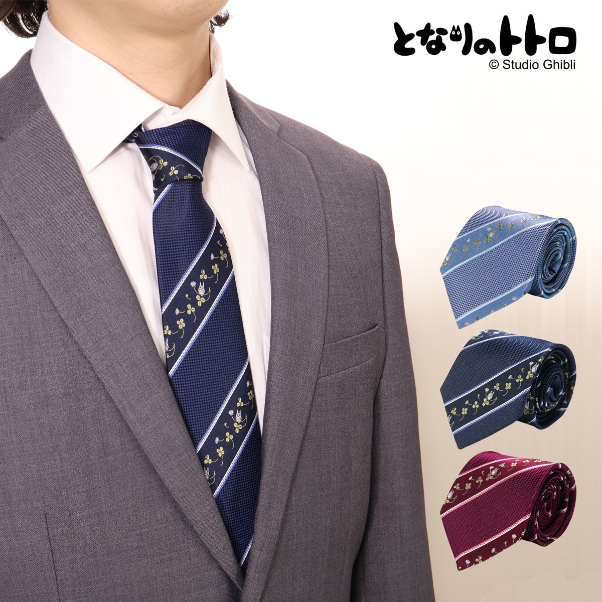トトロのネクタイは遊び心のあるデザインが支持されています。胸元のアクセントになるので、いつものスーツスタイルに可愛さをプラスしたい時にピッタリなネクタイです。