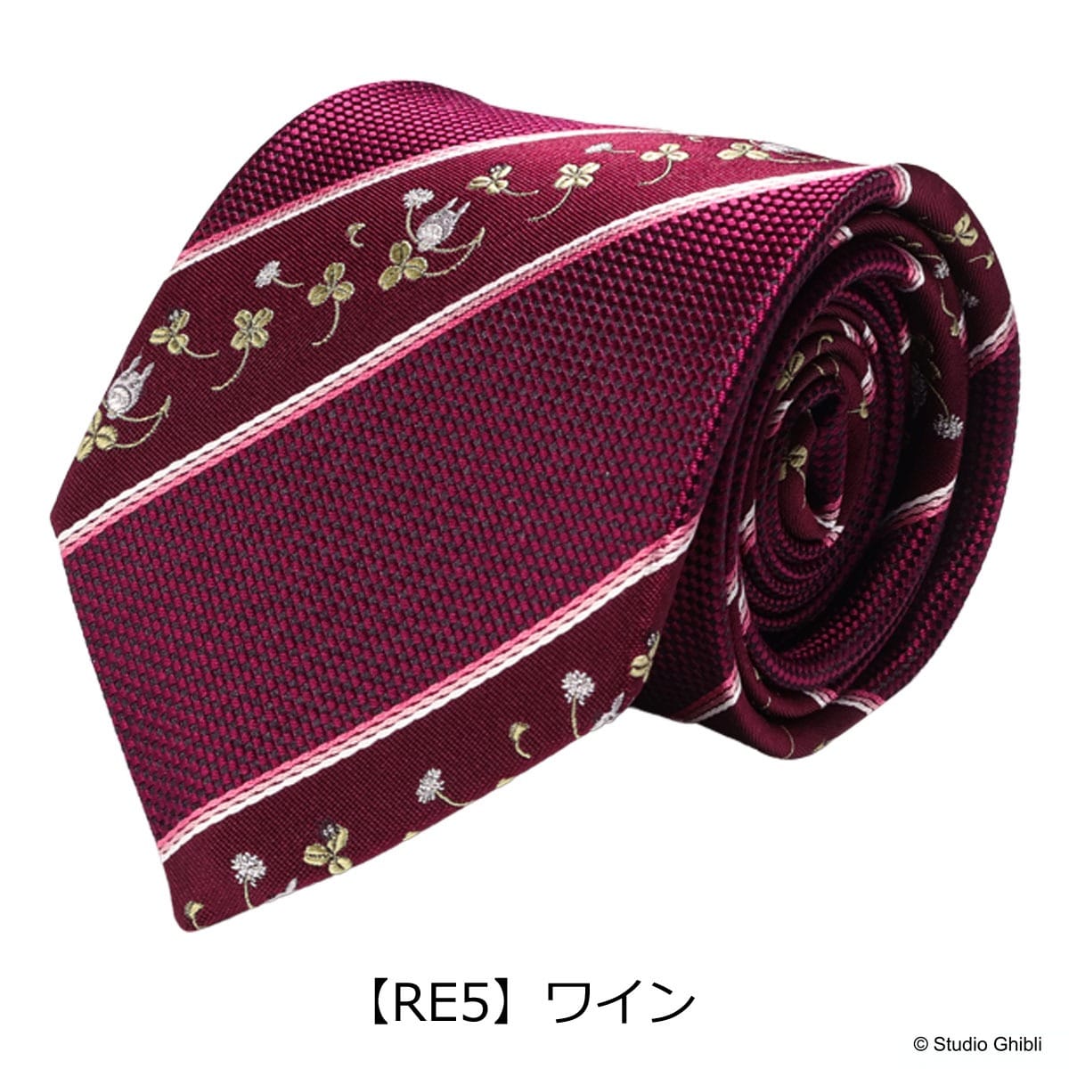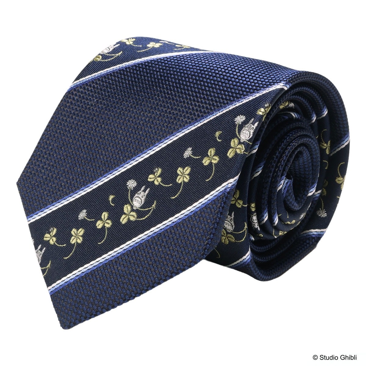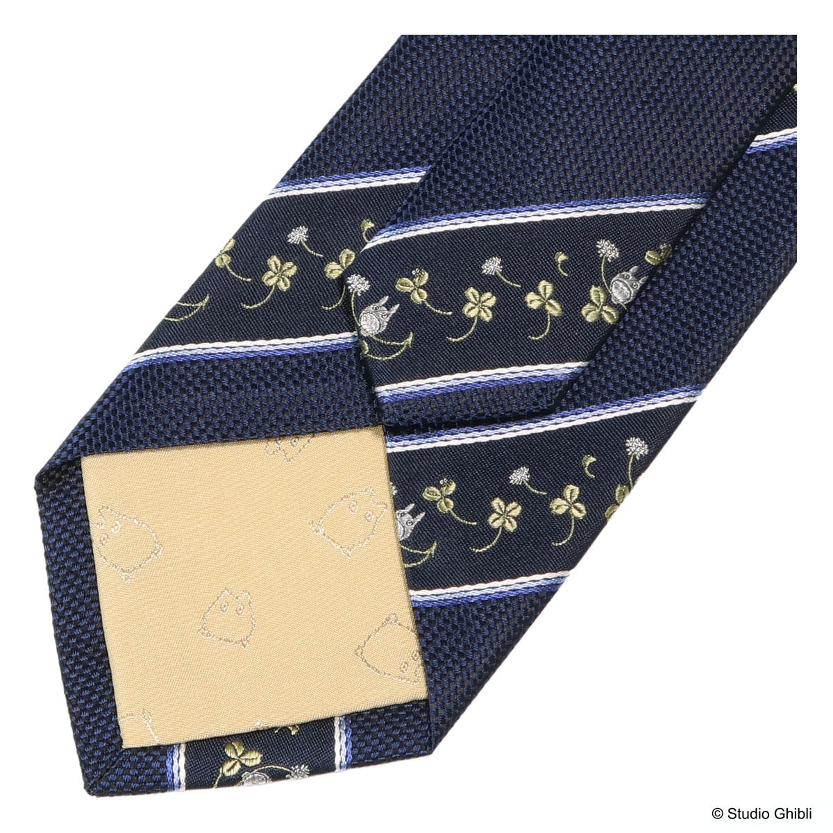 トトロのネクタイは遊び心のあるデザインが支持されています。胸元のアクセントになるので、いつものスーツスタイルに可愛さをプラスしたい時にピッタリなネクタイです。シンプルなバスケット地紋のストライプにトトロとクローバーの葉と花をあしらいました。幸せを呼ぶ四葉のクローバー。小さな小さな「マックロクロスケ」が葉に乗っているので見つけてくださいね。ブルーは明るく爽やかな印象です。ネイビーはブルーからホワイトのグラデーションストライプがすっきりとした印象で胸元を引き締めます。ワインはピンクのグラデーションストライプが華やかな印象です。
