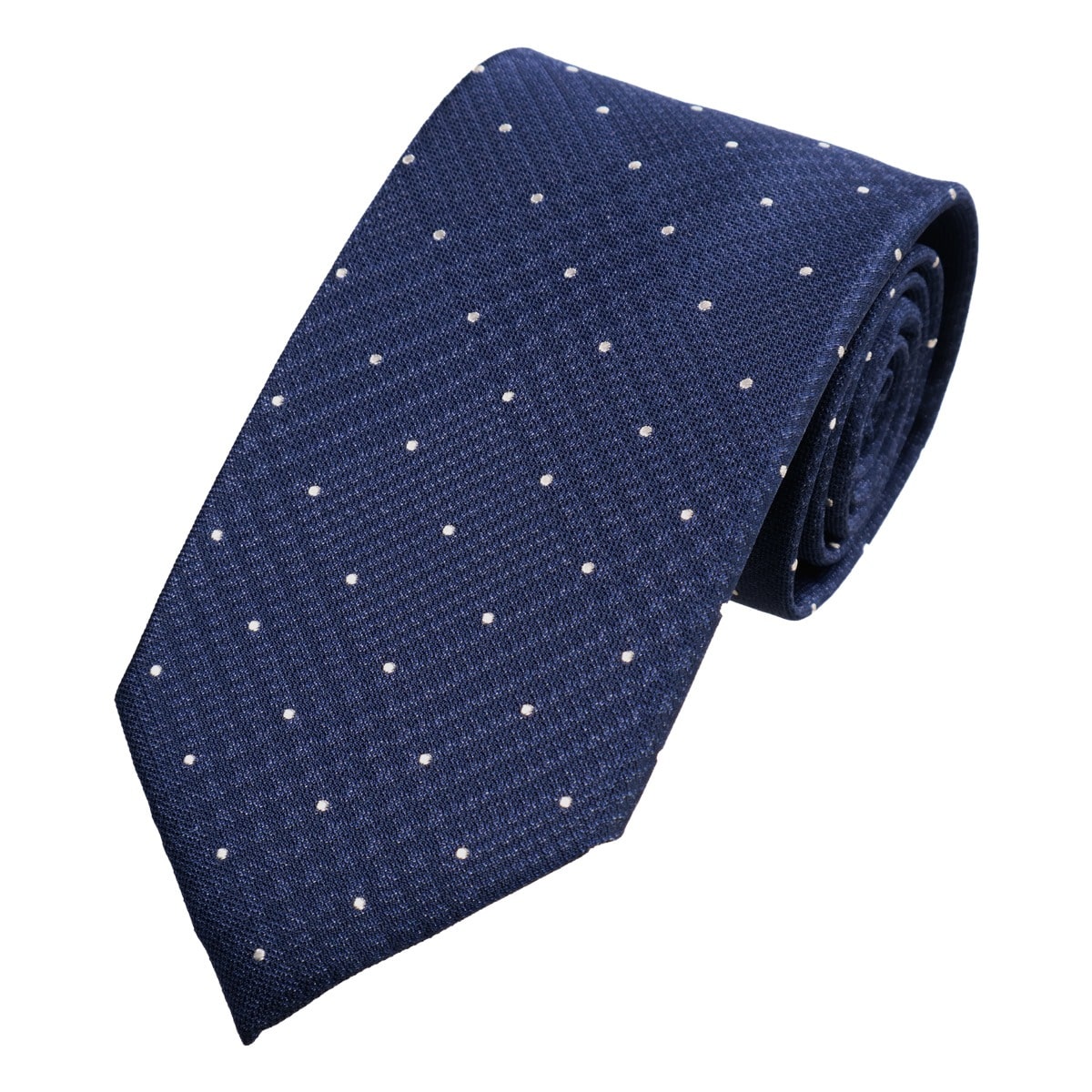 タケオキクチのネクタイは、ベーシックなスーツスタイルを好む、30代から60代の男性におすすめの高品質なネクタイです。記念日などの特別な贈り物にもおすすめのネクタイです。大剣はシンプルなドット柄、小剣にはタケオキクチのアイコンモチーフである、眼鏡をあしらいました。お洒落で遊び心のあるネクタイです。