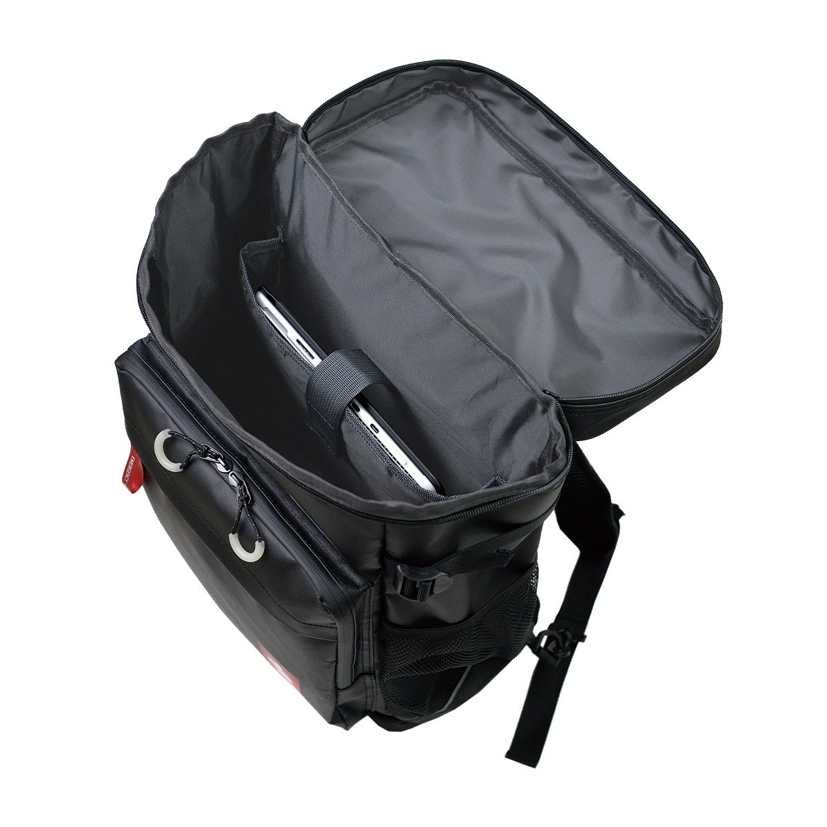 開口部が大きく開くので荷物の出し入れがスムーズです。内装にはノートPC収納ポケットを装備、仕分け用としても便利です。