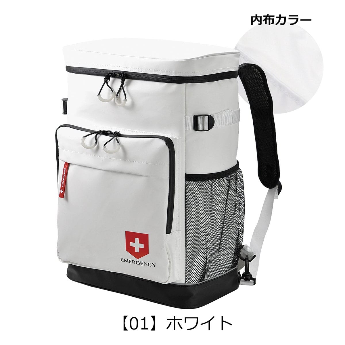 災害に備える、防水・反射材付きの非常持ち出しリュック。15点の防災アイテムがセットになっています。■雨に強い、ターポリン&止水ファスナーターポリンは、ポリエステル生地に合成樹脂をコーティングした素材で、水を通しにくく高い防水性があります。さらに防水コーティングが施された止水ファスナーを使用しています。■夜間も安心、光るジッパータブ&反射材ジッパータブは蓄光素材で太陽光や蛍光灯の光を蓄え、暗闇で自然に発行するため、位置が分かりやすくなります。また、反射材は光を反射し、夜間でも位置を知らせます。■快適設計開口部が大きく開くので荷物の出し入れがスムーズです。内装にはノートPC収納ポケットを装備、仕分け用としても便利です。本体背面とベルトには、クッション性と通気性に優れたエアメッシュを採用。キャリーオン機能も搭載しています。