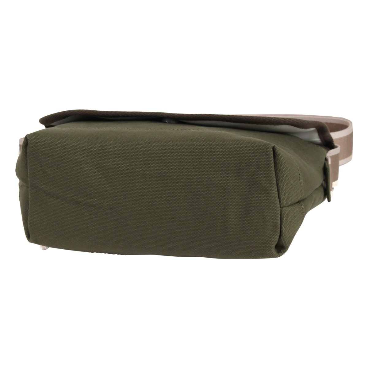 配色のテープハンドルが目を引くキャンパスバッグ。安定感のあるデザインと収納力を兼ね備えています。