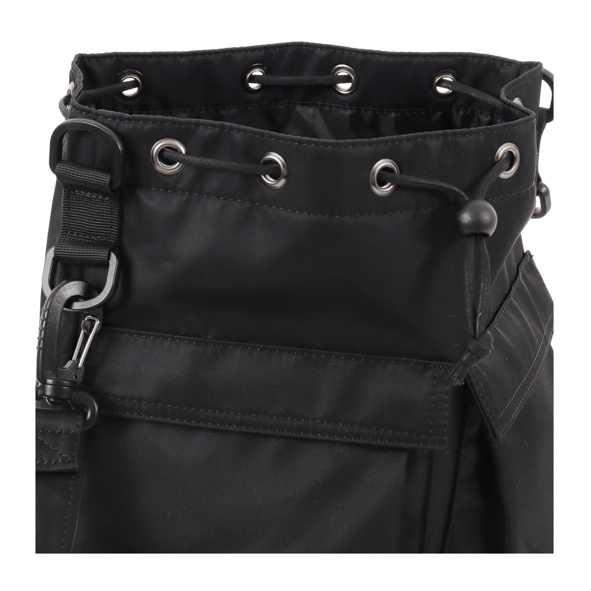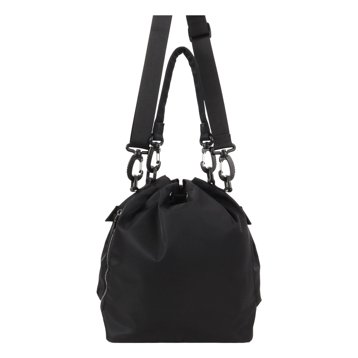 仕様:ロープコード式開閉内側:ファスナーポケット×1フリーポケット×1前面:フリーポケット×2側面:ファスナーポケット×1