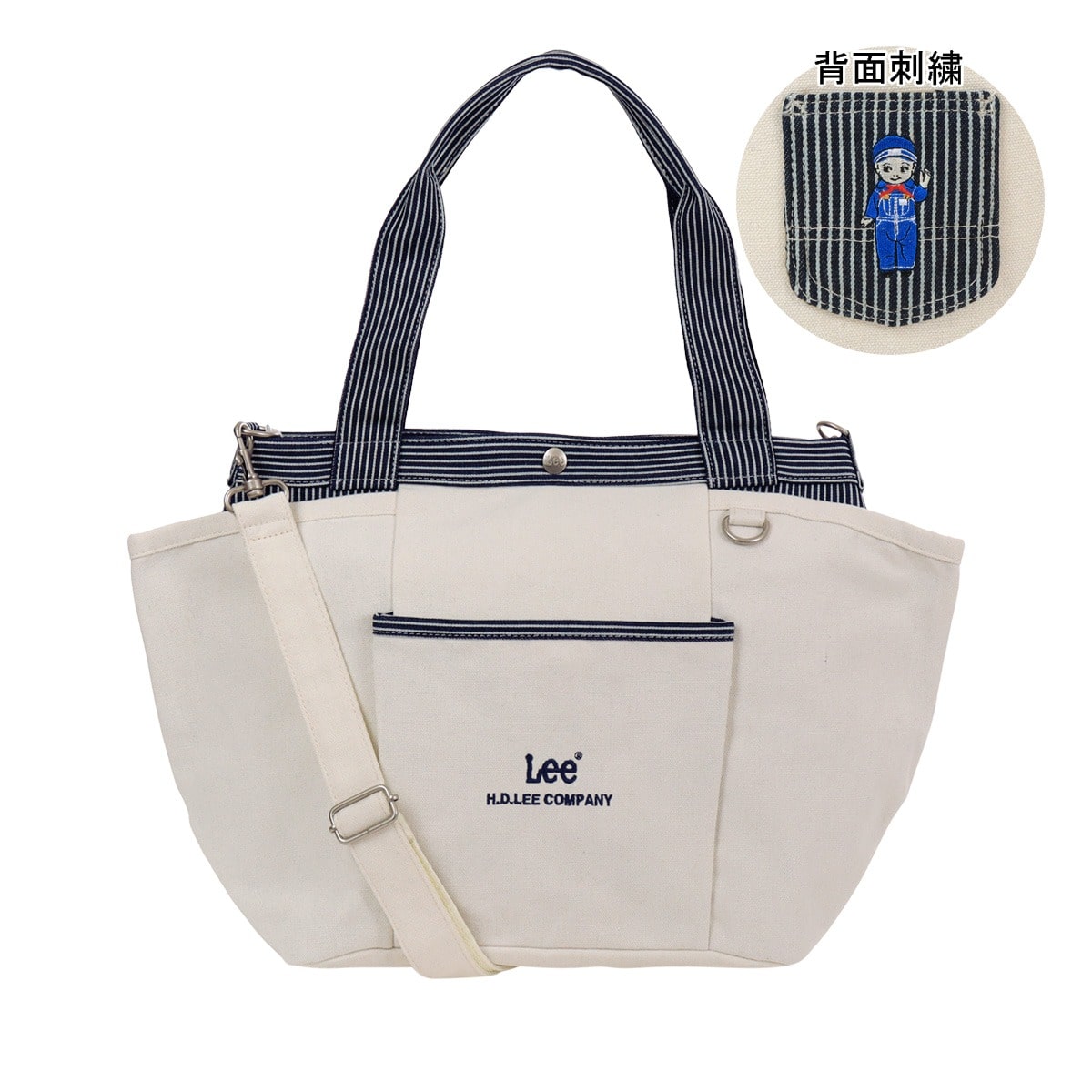 世界のマニアに大人気のマスコット人形Buddy Leeのロゴ刺繍を使用したシリーズです。背面にジーンズをイメージしたロゴ刺繍入りミニポケットを使用。外出や日常使いマザーバッグとしてもピッタリなアイテム