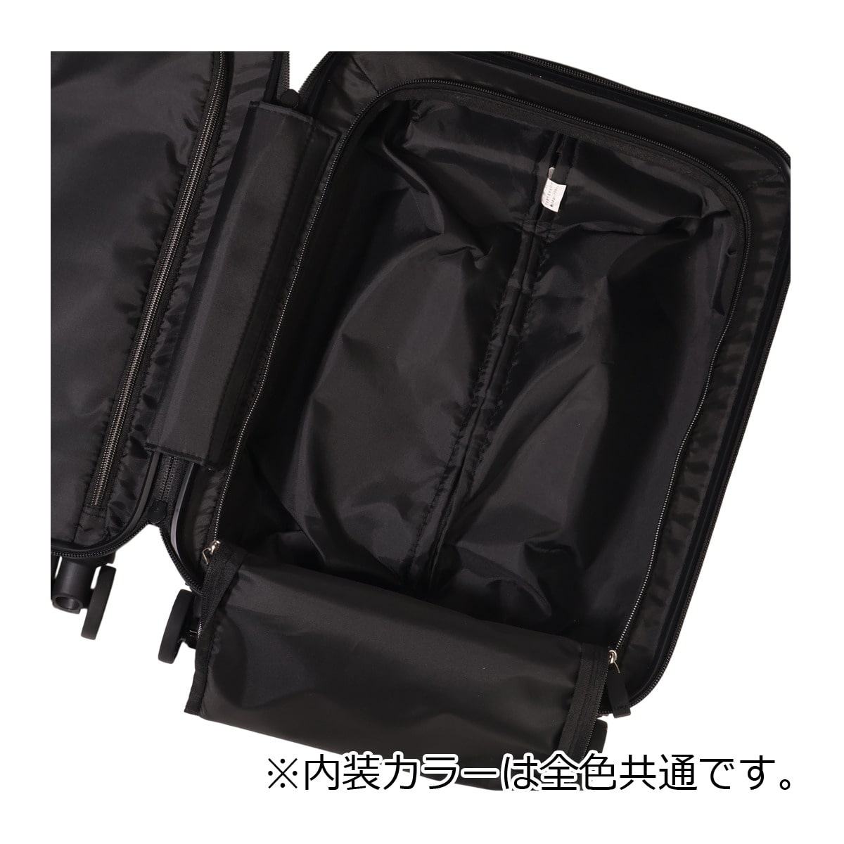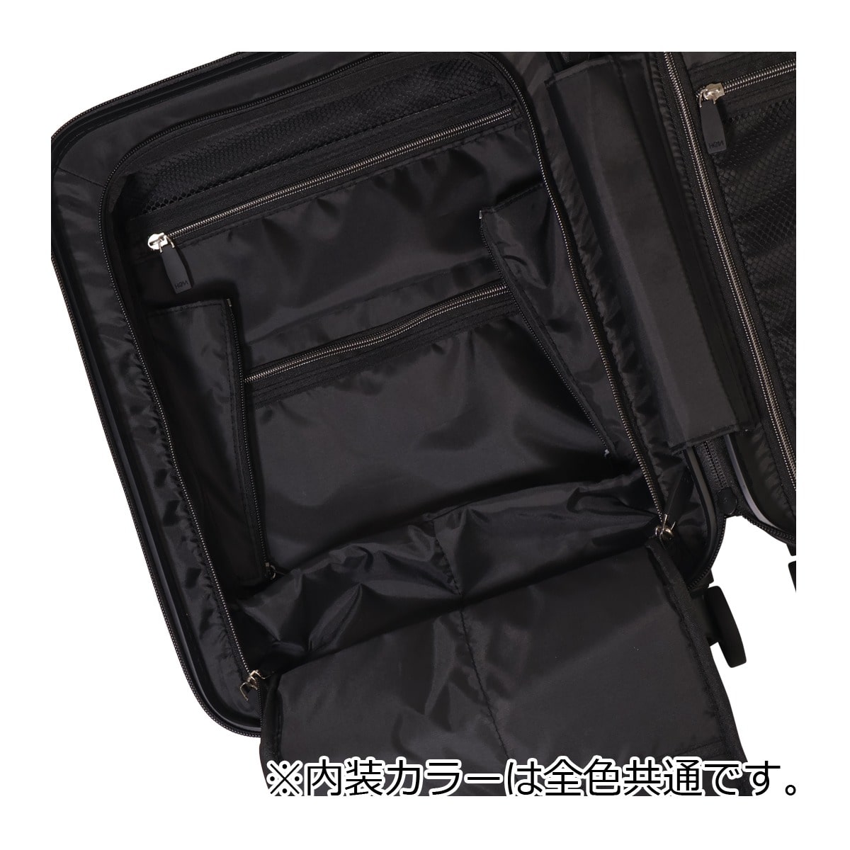 フロントオープン型だから荷物の出し入れが簡単。内装仕切りは内外どちらからでも開閉できるため、フロントポケットから奥側の荷物を取り出すことが可能です。