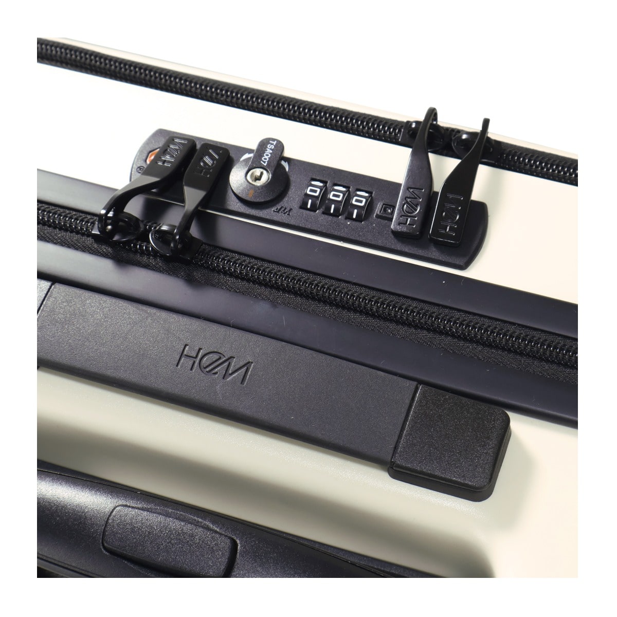 - > TRANSIT LOUNGE トランジットラウンジ HeM ヘム スーツケース 機内持ち込み TSAロック 21L 40cm 2.9kg キャリーケース キャリーバッグ 39-5120 フロントオープン コインロッカー対応 静音キャスター ハードキャリー ファスナー 4輪キャリー アイボリー