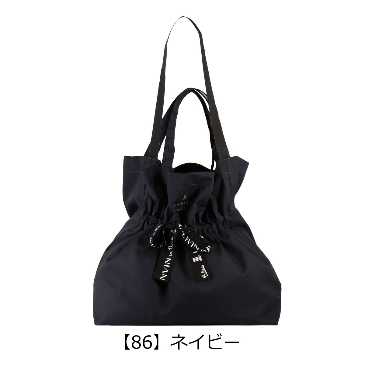 クラボウが開発した抗菌・抗ウイルス機能繊維クレンゼを使用したエコバッグです。手提げとショルダーの2WAY仕様、ポケッタブルにもなり、持ち運びにも便利です。ランバンオンブルーのロゴをプリントしたグログランリボンをフロントにあしらい、リボンを絞ると可愛らしいフォルムになります。