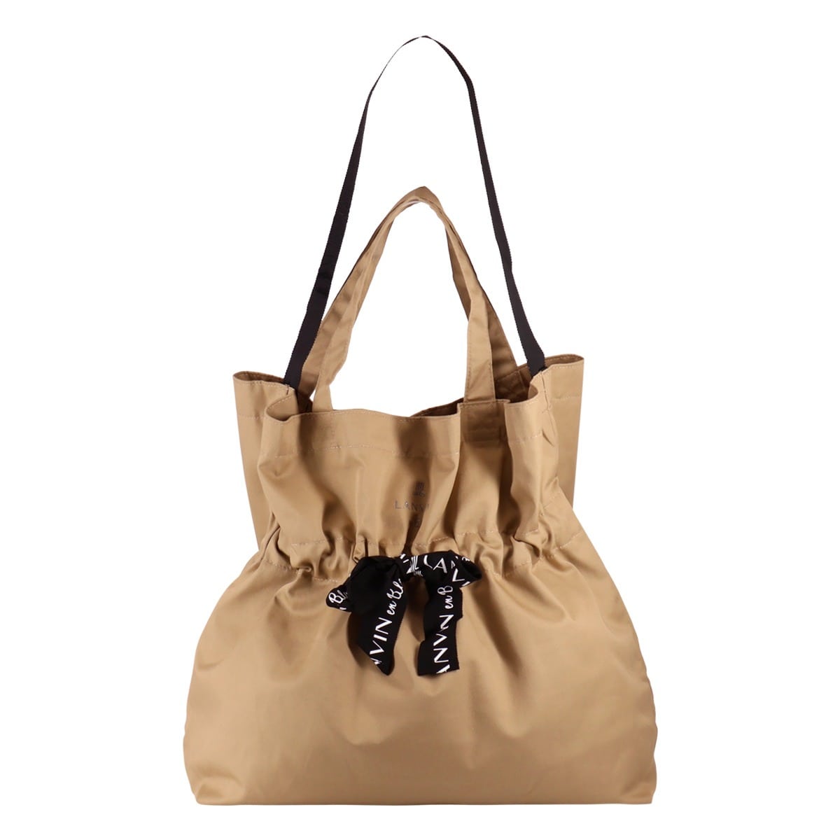 クラボウが開発した抗菌・抗ウイルス機能繊維クレンゼを使用したエコバッグです。手提げとショルダーの2WAY仕様、ポケッタブルにもなり、持ち運びにも便利です。ランバンオンブルーのロゴをプリントしたグログランリボンをフロントにあしらい、リボンを絞ると可愛らしいフォルムになります。