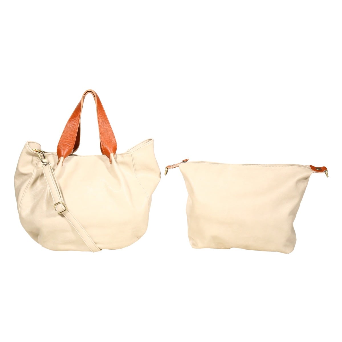 バッグ本体とハンドルを配色で切り替えたカラーミックスがポイントとなっています。しっくりと肌に馴染む柔らかな素材とかわいらしい丸いフォルムが女性らしさを感じさせます。中にポーチが入っているバッグインバッグ仕様。ポーチ単体としてお使い頂くか付属のショルダーベルトを付けてミニショルダーバッグとしても使えます。ショルダーベルトは本体バッグに付けてショルダーバッグとしても使用できる機能性の高いバッグです。B5サイズはもちろん、タンブラー500mlや小物もしっかり収納できます。