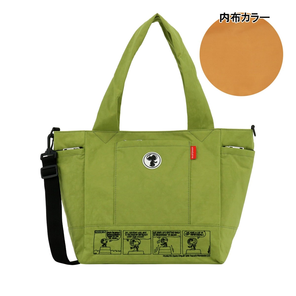 人気キャラクターのピーナッツとズッケロのコラボアイテム!荷物の多い方でも、安心して使えるサイズです。