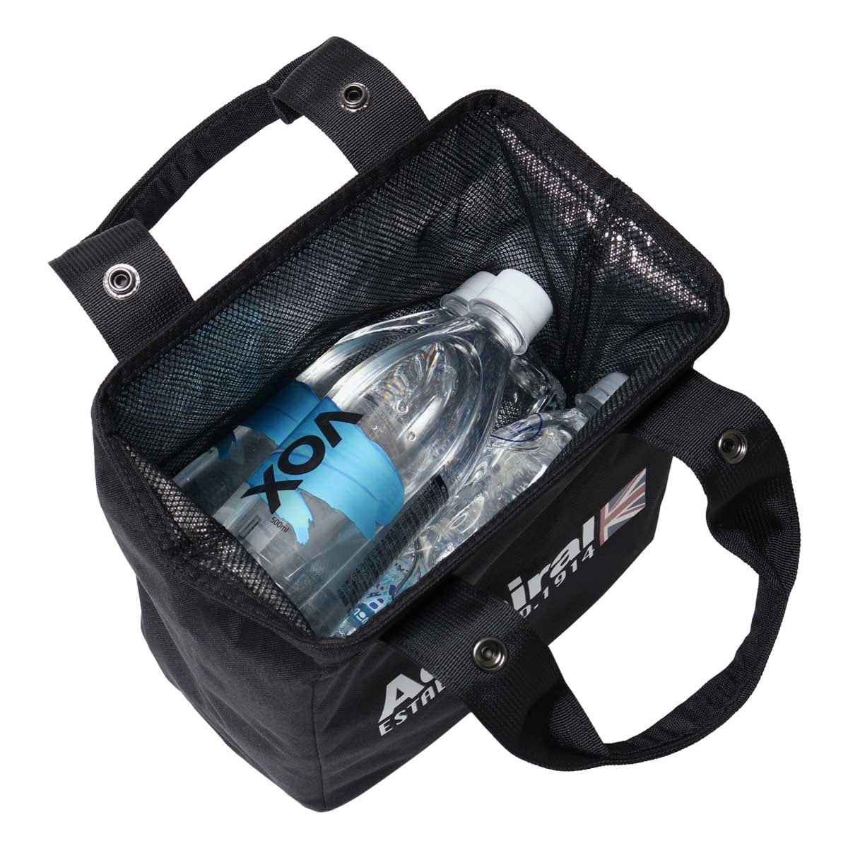 ソフトタイプの保冷バッグ。ラウンドトートバッグサイズで開口部は口金入りの為、大きく開きやすい構造です。500mlのペットボトルを寝かせた状態で最大5~6本収納可能です。