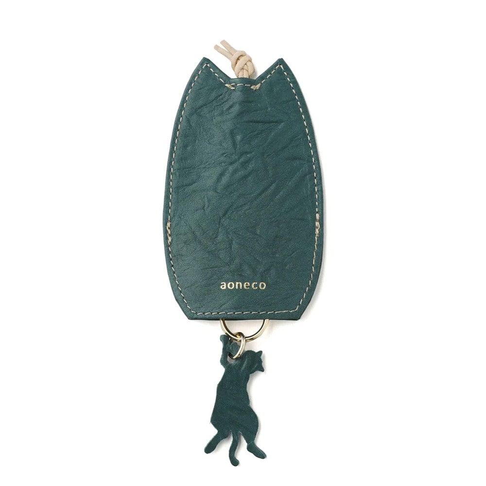 【今までにないネコプロダクト】aonecoプロダクトのテーマは”厳かにネコ”シンプルで控えめにネコのシルエットを表現しています。かわいくなりすぎぬよう、あくまでも厳かに、その上で、モノとして使い勝手が良いという原理原則からブレず、大人向けでスタイリッシュなプロダクトに仕立てました。価格以上の価値を実感できるプロダクト(老舗高級ブランド出身のデザイナーと職人が上質な素材を用いて製作)+限りなく透明性のあるチャリティー(購入することで保護ネコ支援に直接繋がる)チャリティー商品にありがちなチープに感じる商品はご法度とし、作り手がプライドとネコ愛を持って、こだわり尽くしたものづくりを行います。【プロジェクトについて】プロジェクト及び製造を手掛ける「株式会社waji(ワジ)」は、大阪・阿倍野区の有形文化財に指定されている、古民家を改装したアトリエを活動拠点とし、主に革製品をデザインから製造まで一貫して行う「プロのものづくり集団」です。waji代表の立案により、寄付チケットのチャリティープロジェクトが始まりました。【寄付チケットについて】商品に付属している寄付チケットの2次元バーコードから寄付ページへ移動。支援先を任意で選択し、チケットコードを入力。皆様からお贈りいただいた寄付チケットは、ネコたちの為に日々頑張る保護施設へ100%贈られます。すべてのネコが、隙だらけに眠れますように・・・。【レザーカバーに収まるキーケース】革ひもの先には二重リングが付いていてカギを数本装着できます。カギを使う時は下ろして、使わない時は革ひもを引き上げてカバー内に収納、スリムなネコモチーフのキーカバー。やわらかく手になじむ革を使用し、ひとつひとつ職人が丁寧に仕立てています。【染色と加工について】深みのある色になるよう、顔料ではなく染料をメインに色付け。ムラのある風格ある表情に仕立てました。数百種類あるパターンから選びぬいた、ネコの毛並みを意識した型押しを使用。同じデザインがふたつとない歪に施されたラインが特別でスタイリッシュな雰囲気を醸し出します。