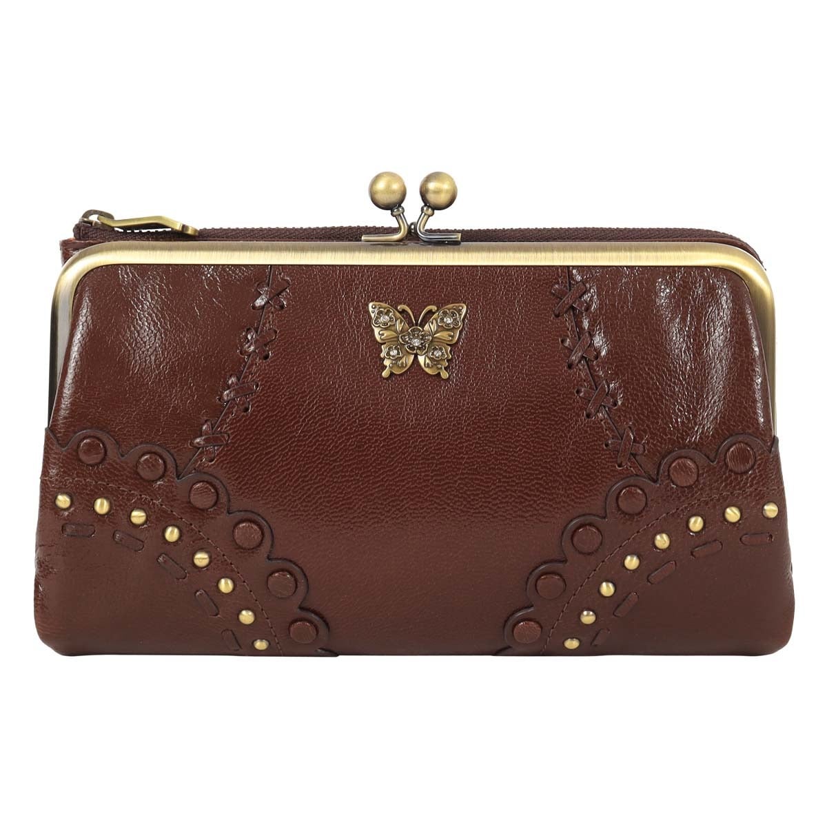 クラフト感漂うヴィンテージライクなデザインと、ブランドらしいロマンティックなモチーフが融合した、大人の女性にぴったりのレザーウォレットシリーズです。アーカイブのブーツから着想を得たステッチワークやカシメ使い、そして中央で存在感を放つバタフライ×フラワーの立体ブローチが、クラシカルで重厚感ある印象を演出。素材には軽くて丈夫なゴートレザー(山羊革)を採用し、手になじむしなやかさと、傷が目立ちにくい実用性を兼ね備えています。