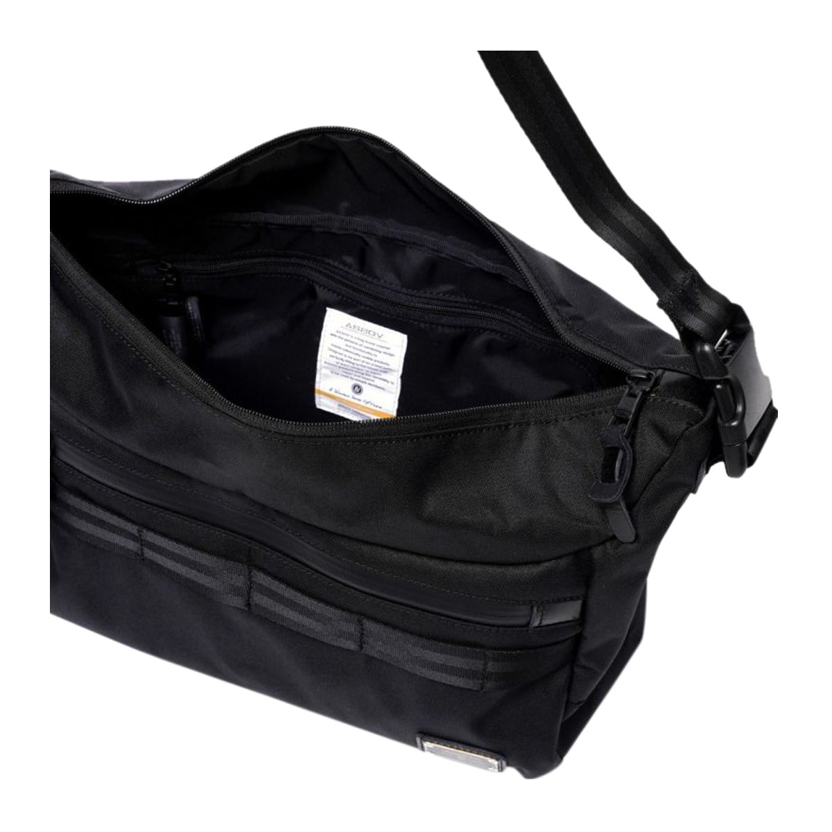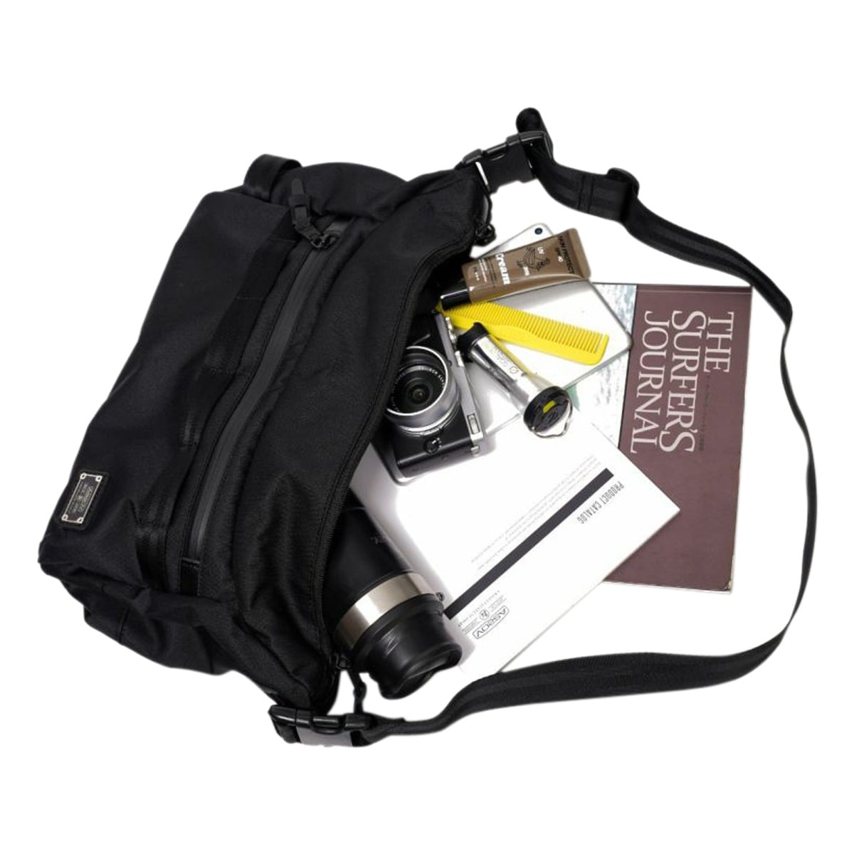 付属しているハンドルストラップ(short)、ショルダーストラップ(long)を付け替えることでショルダー・手持ちの2WAYで使えるショルダーバッグです。たっぷりとったマチによって見た目以上の容量を持ち、底面には薄手のクッションを入れてあるので、簡易的なカメラバッグとしての使用もできます。また、フロントだけでなく背面にもジップポケットを配置しているので、海外旅行などで貴重品を入れるスペースとしても安心です。