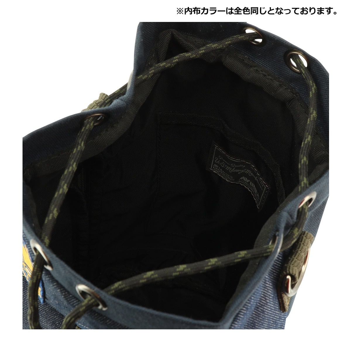 仕様:ドローコード式開閉内側:フリーポケット×1前面:金具式ボタンポケット×1側面:内部直結ファスナー×1