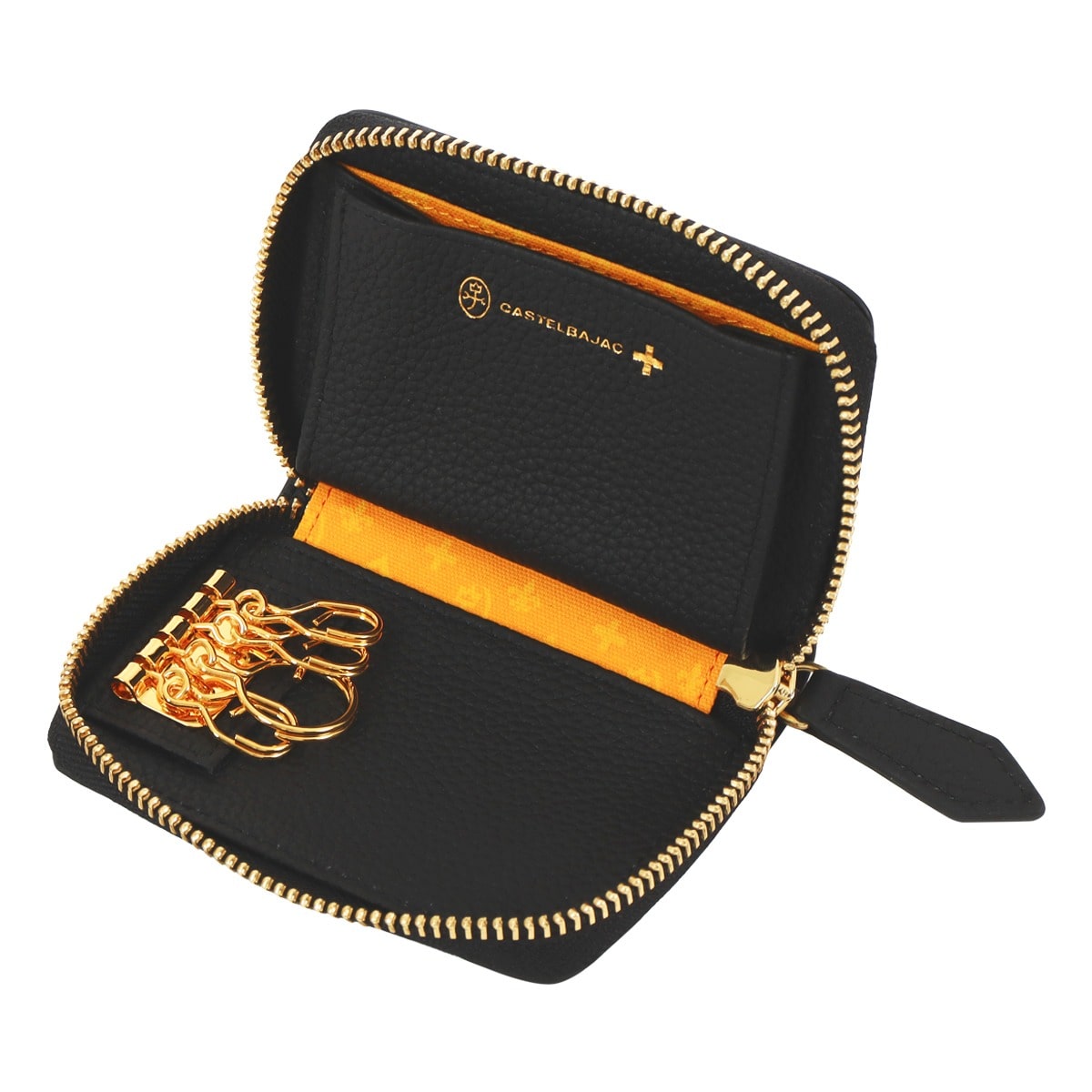 仕様:ラウンドファスナー式開閉内側:4連式キーレーン×1(大×1、小×3)カードポケット×1フリーポケット×1