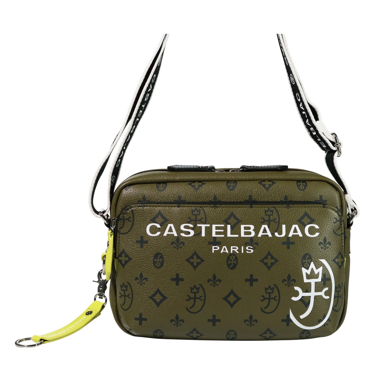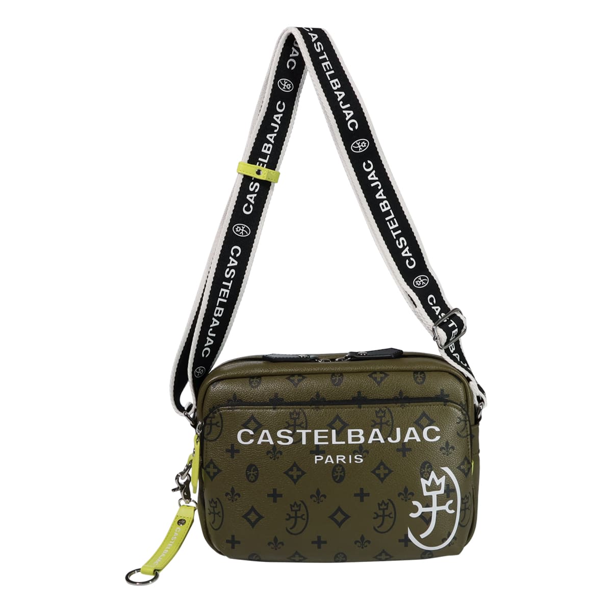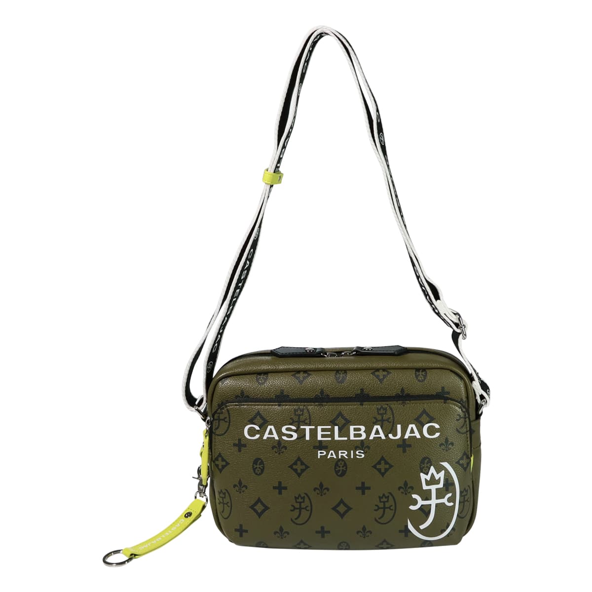 バッグの本体色と差し色にもなるアクセントカラーのコンビネーションが魅力のカステルバジャックのミニショルダーバッグ。本体素材はシボ感のある合成皮革を使用し、カバンの前面や背面にカステルバジャックのオリジナルモノグラム柄をプリントしました。付属のストラップがアクセントとなっています。