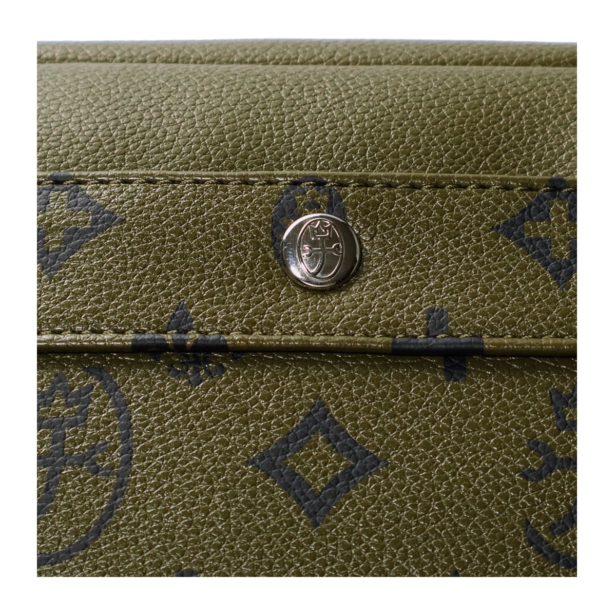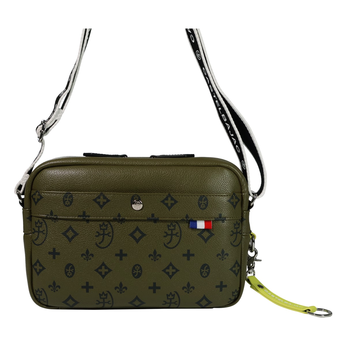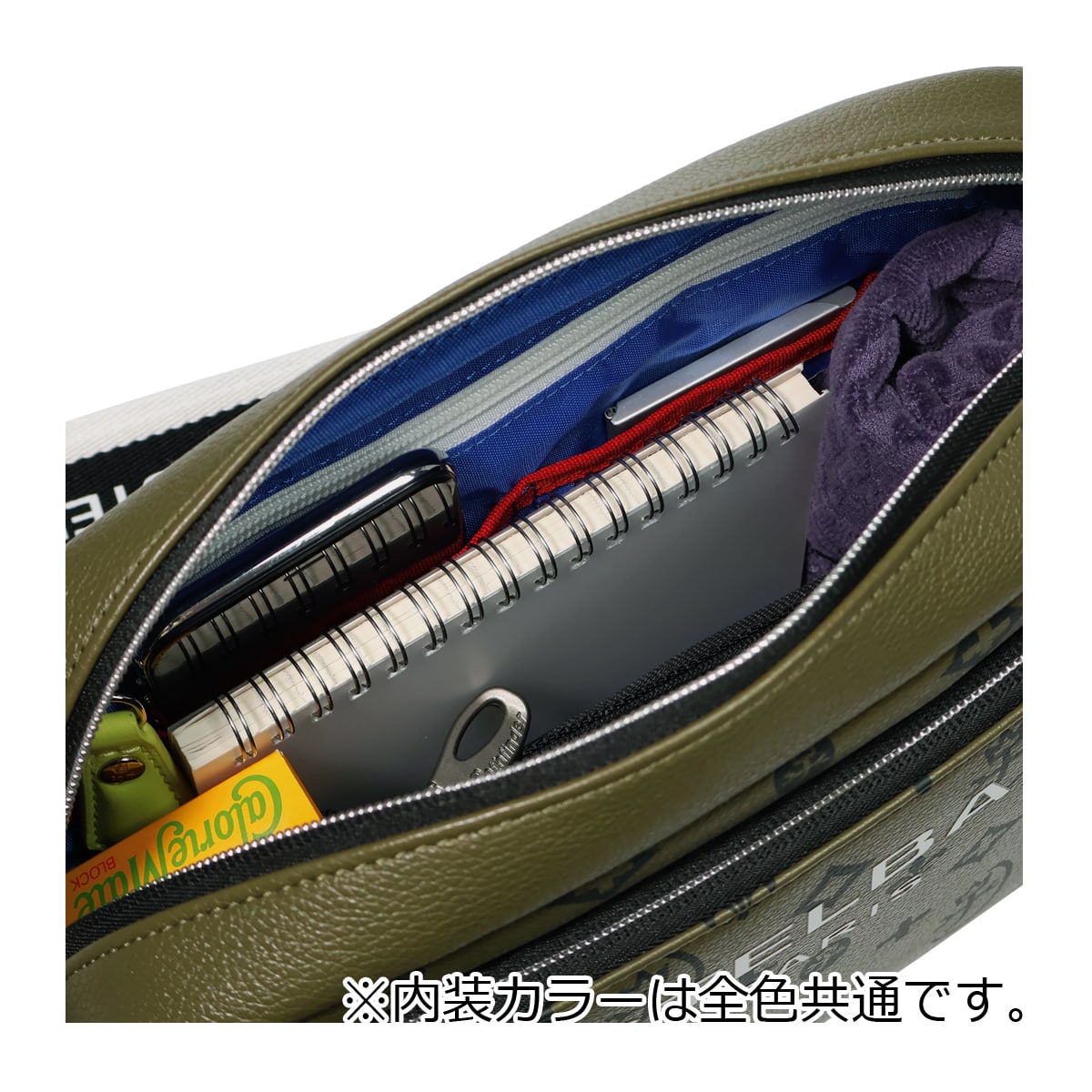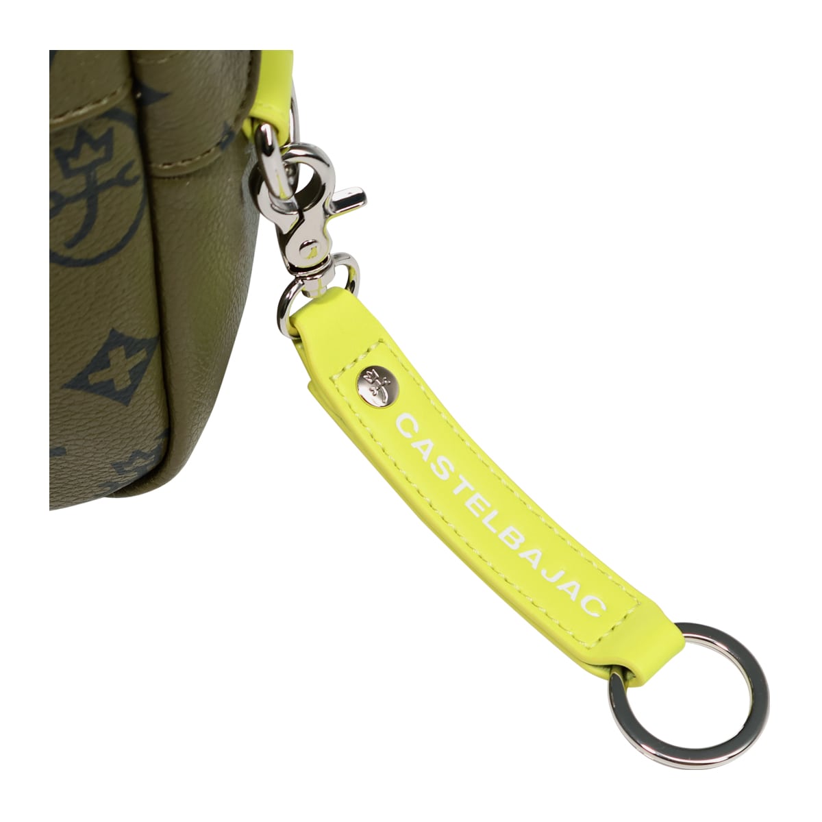 バッグの本体色と差し色にもなるアクセントカラーのコンビネーションが魅力のカステルバジャックのミニショルダーバッグ。本体素材はシボ感のある合成皮革を使用し、カバンの前面や背面にカステルバジャックのオリジナルモノグラム柄をプリントしました。付属のストラップがアクセントとなっています。