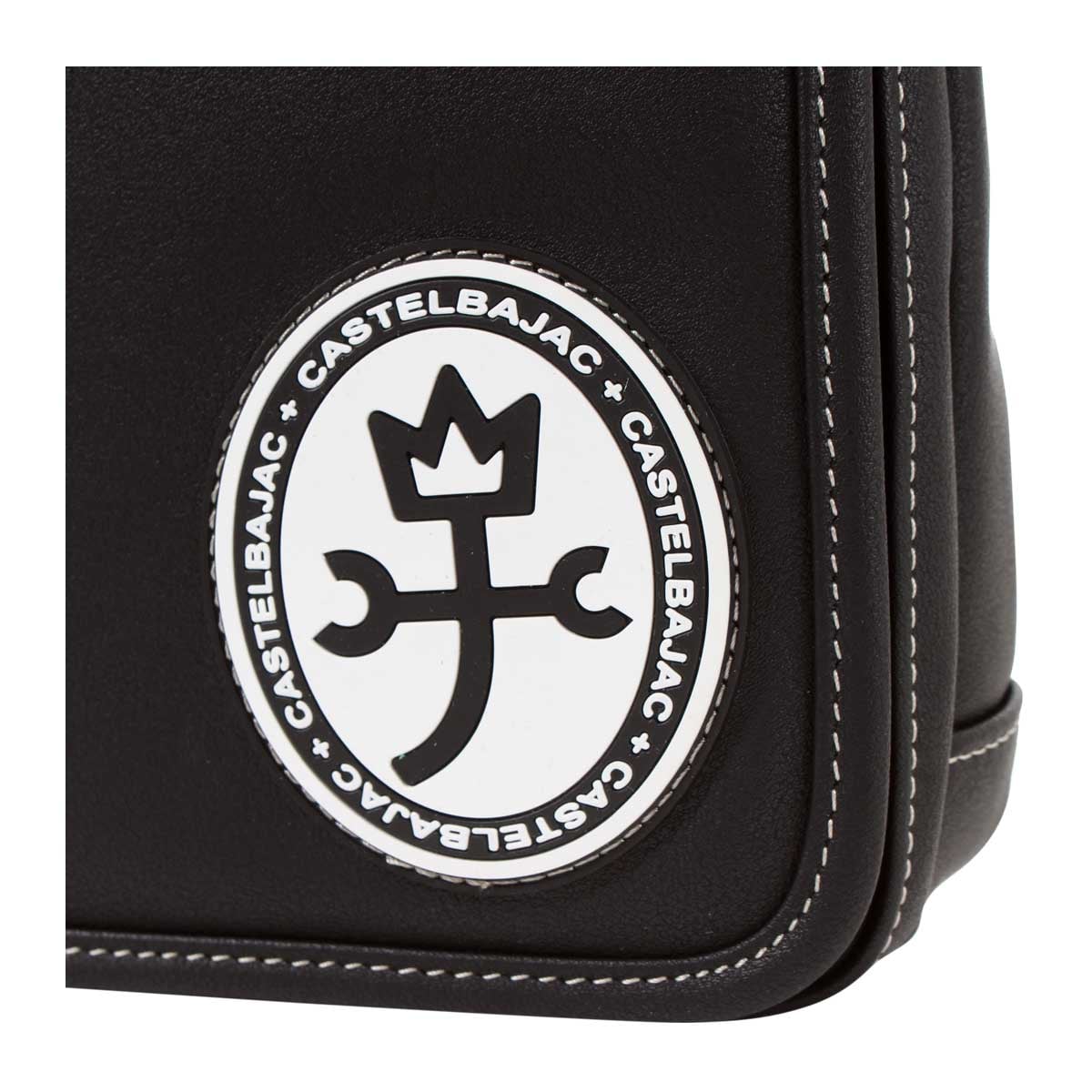 シャープな表現が特徴のシリコンパーツとバジャックの4原色をポイントで使用したモノトーンカラーの合皮カジュアル。モノトーンカラーに合わせたファスナーやメタル類がシャープでスポーティな雰囲気を演出します。