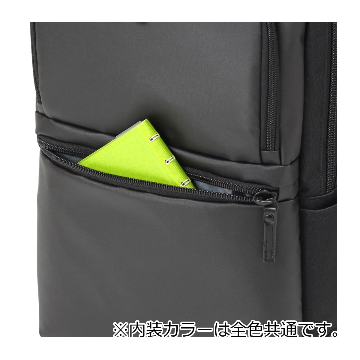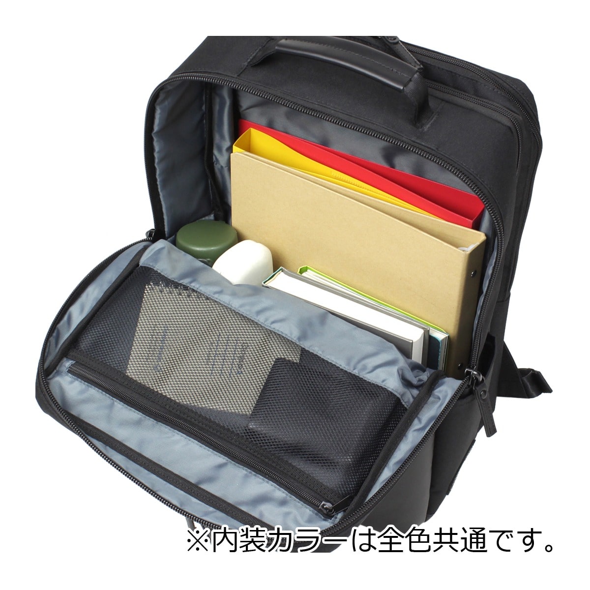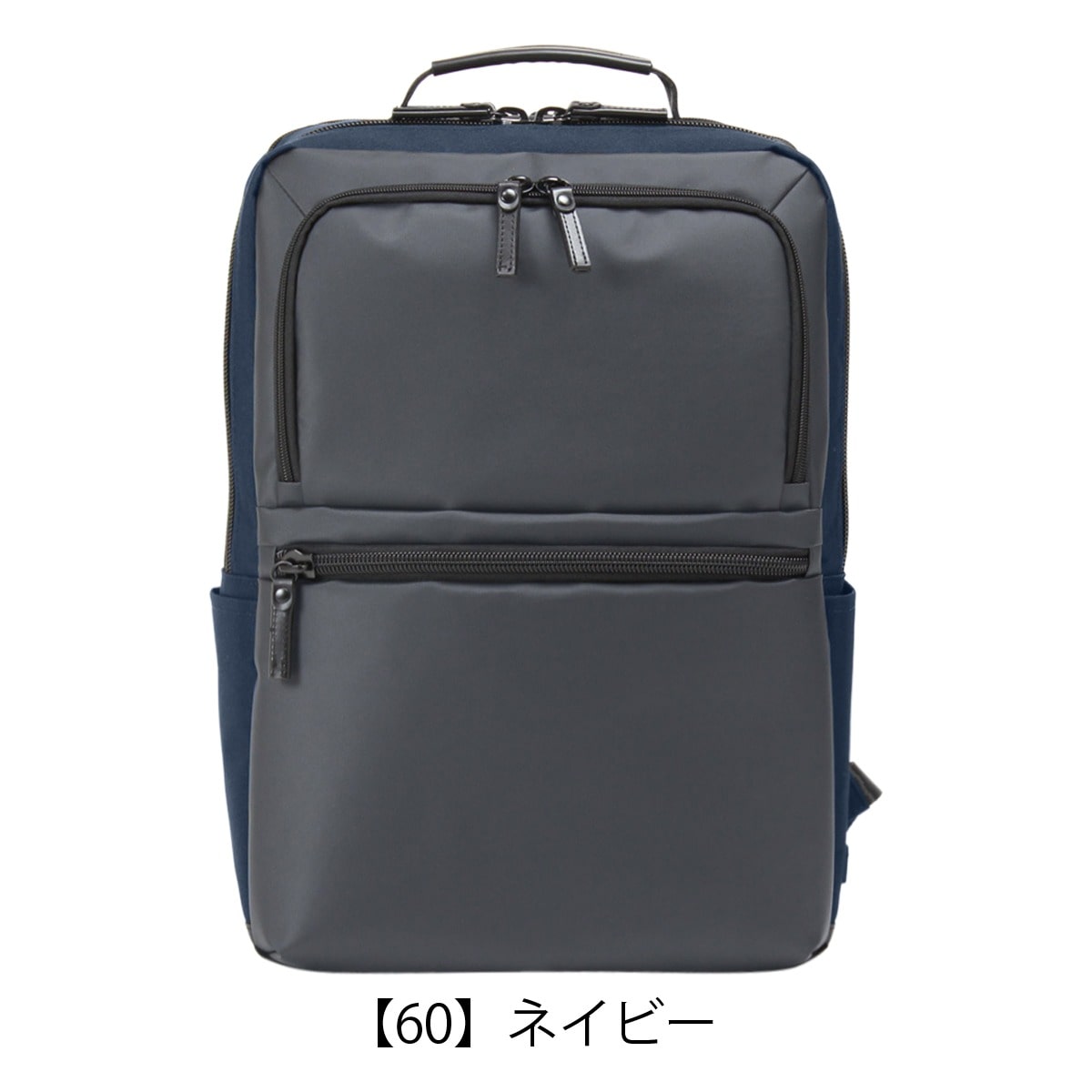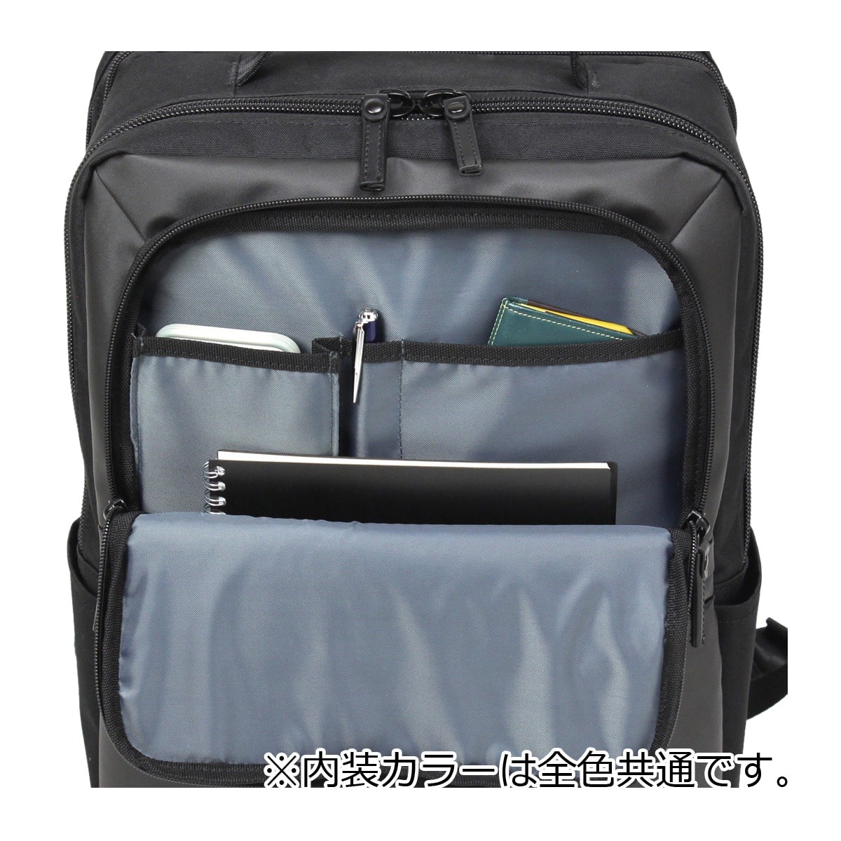 仕様:ダブルファスナー式開閉内側:前面側:ファスナー式メッシュポケット×2フラップポケット×1背面側:PC収納ポケット×1前面:ダブルファスナーポケット×1(内側:マチ付きフリーポケット×1、ペンホルダー×1、フリーポケット×1)ファスナーポケット×1背面:ファスナーポケット×1側面:フリーポケット×1ファスナー拡張ポケット×1エキスパンダブル機能チェストベルト