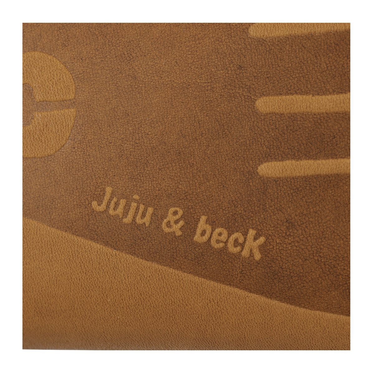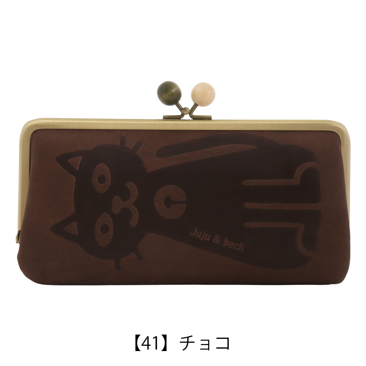 姉弟のように仲良しな2匹の猫をモデルに誕生したキャラクターがモチーフで、身に付けているとほっこり笑顔になるようなキャッチーなデザインとカラフルな色展開の雑貨小物シリーズ「juju&beck(ジュジュアンドベック)」。落ち着いた色合いとしっとりとした本革レザーが手になじみ、温かみのあるjujuとbeckが描かれたほっこり可愛らしいデザインが特徴的。