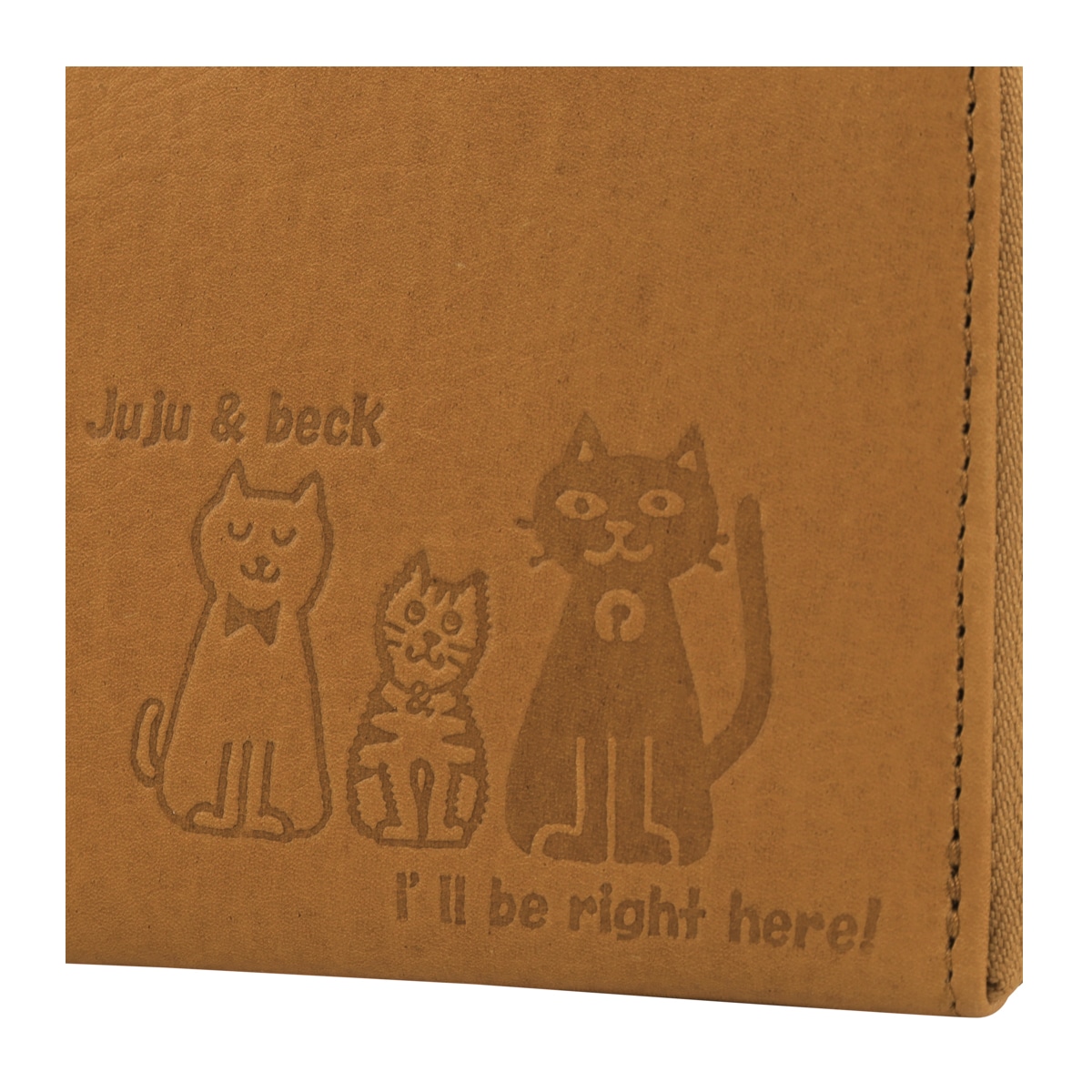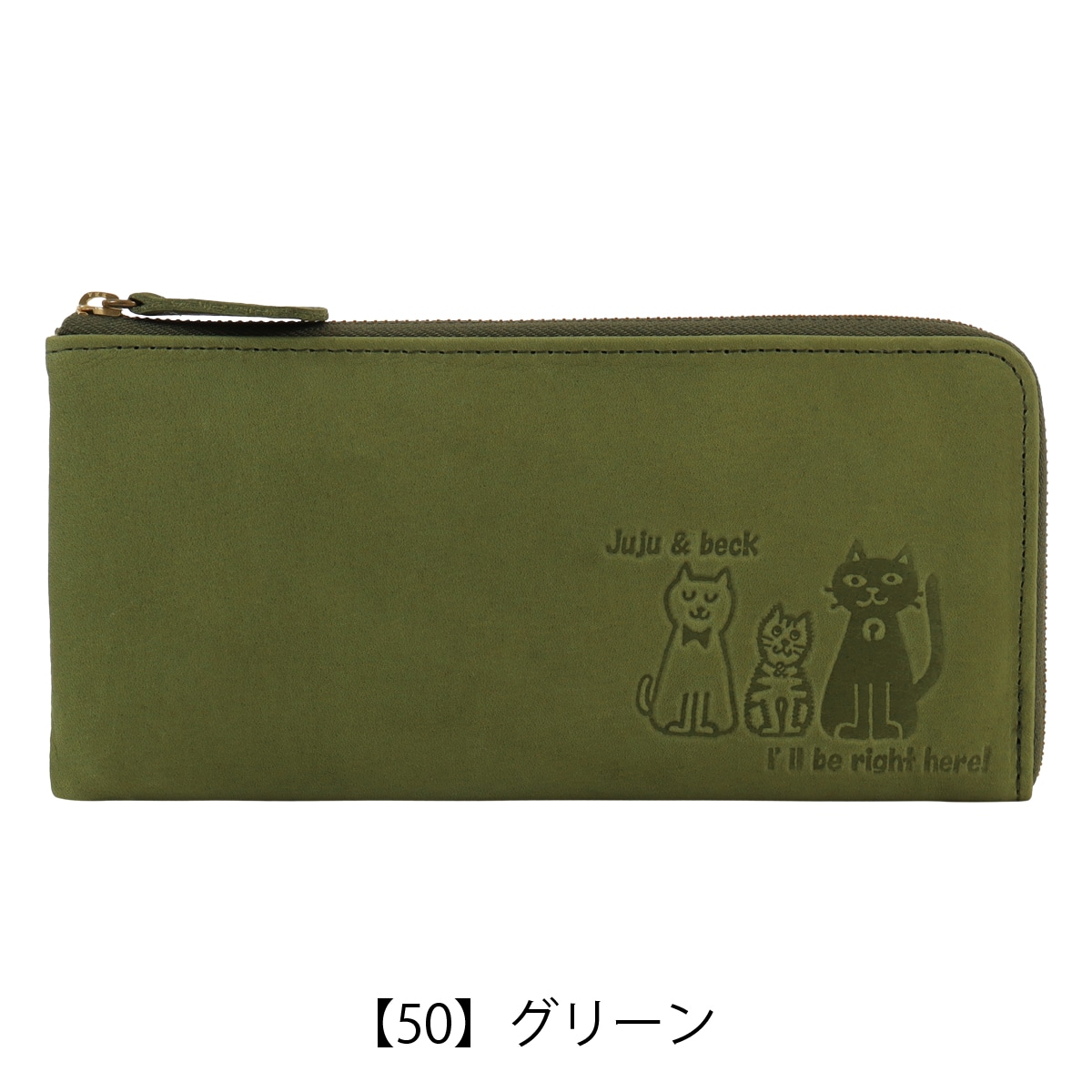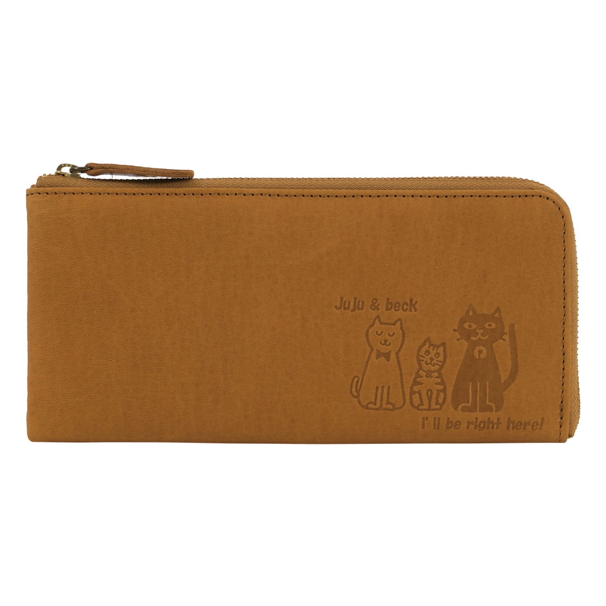 姉弟のように仲良しな2匹の猫をモデルに誕生したキャラクターがモチーフで、身に付けているとほっこり笑顔になるようなキャッチーなデザインとカラフルな色展開の雑貨小物シリーズ「juju&beck(ジュジュアンドベック)」。落ち着いた色合いとしっとりとした本革レザーが手になじみ、温かみのあるjujuとbeckが描かれたほっこり可愛らしいデザインが特徴的。
