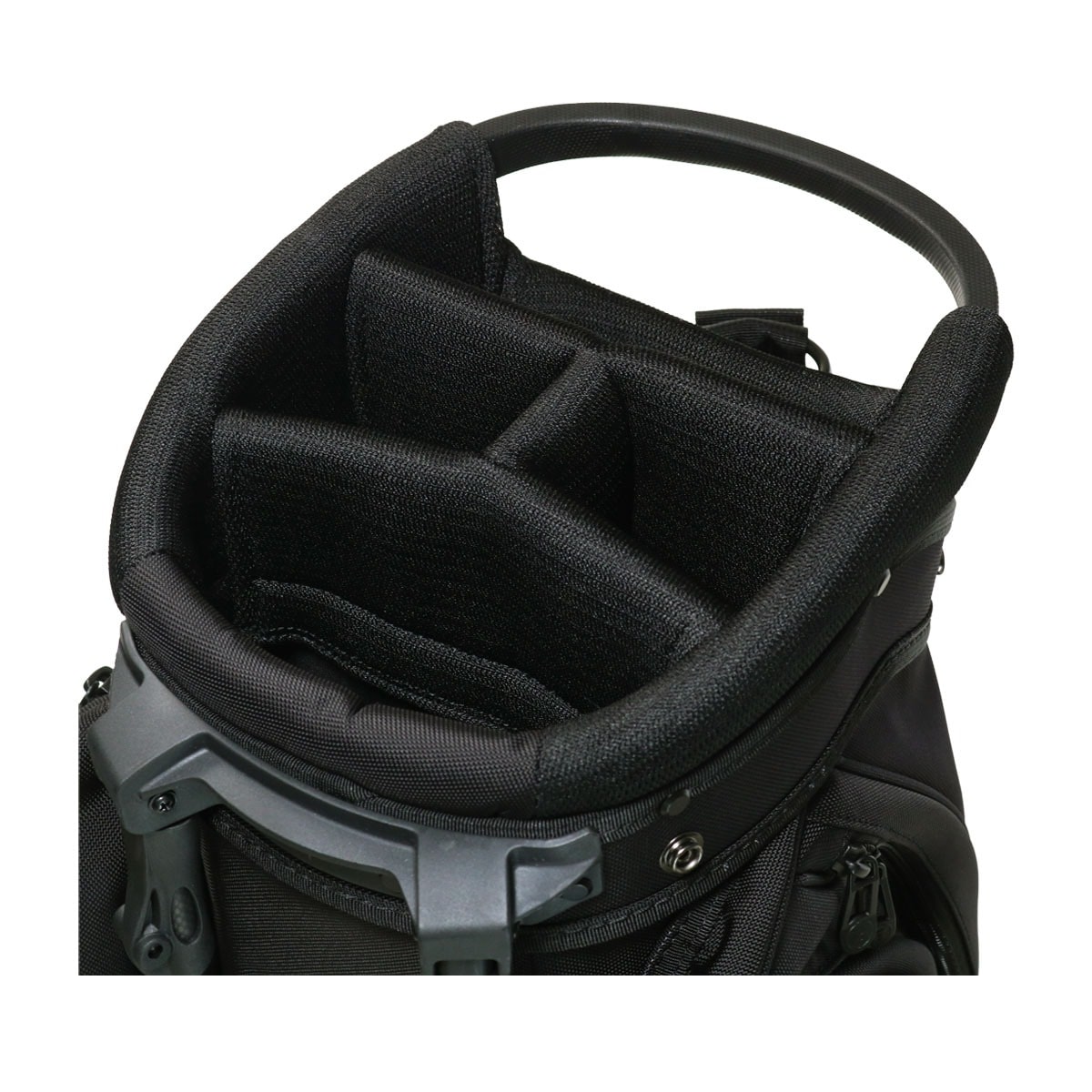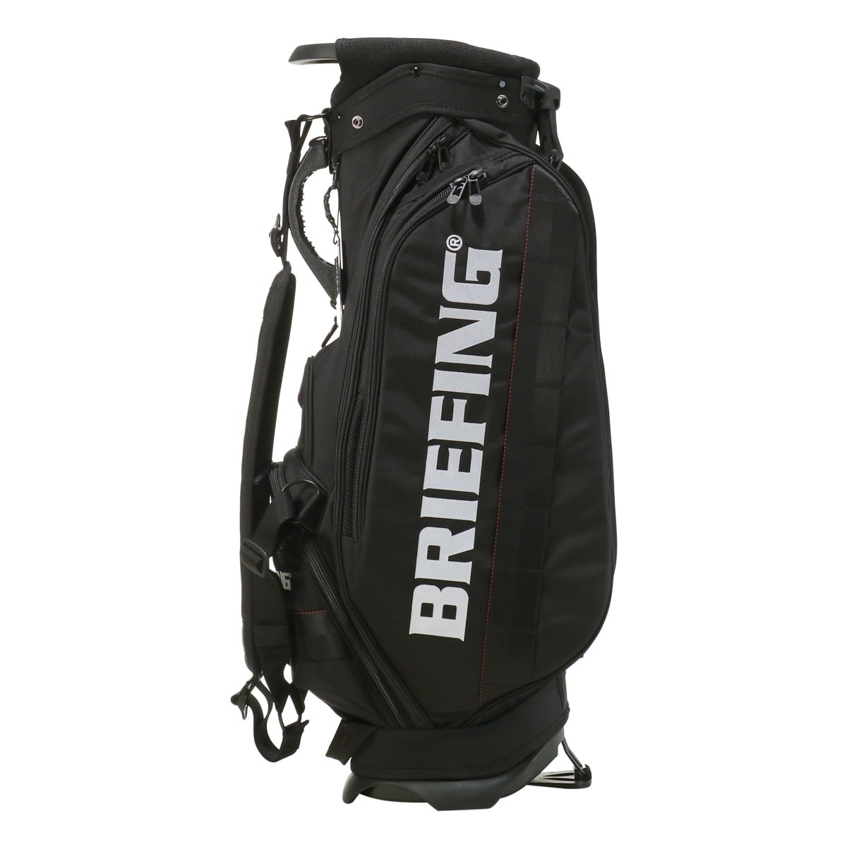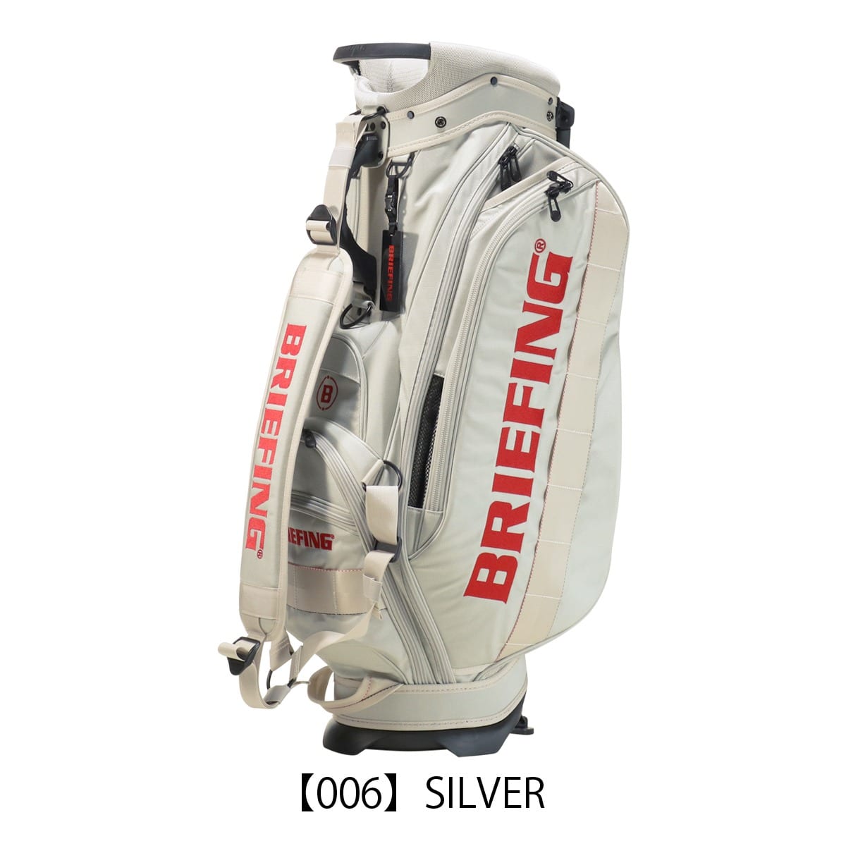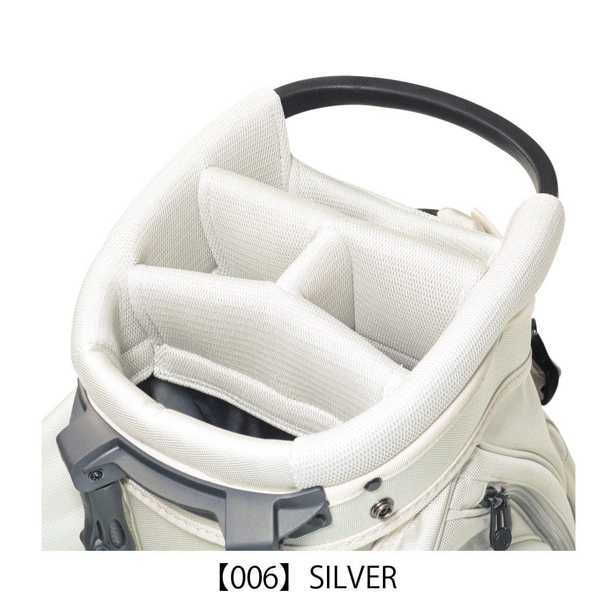 備考:キャディバッグをクラブ・アクセサリー等収納物を入れた状態で立てる時は、倒れる恐れがありますので十分にご注意ください。キャディバッグは、車のトランク内等で横にしたまま長時間上に重い物を載せたり、強く押さえたりしますと変形する恐れがありますのでご注意下さい。本体生地、テープ等の色落ちについては、十分に注意しておりますが、水・汗・摩擦などの諸条件による色落ちを完全に防止することは出来ません。バッグが濡れたまま又は、濡れた物を収納したまま長時間使用されますと衣服や収納物にバッグの色移りが発生する場合があります。